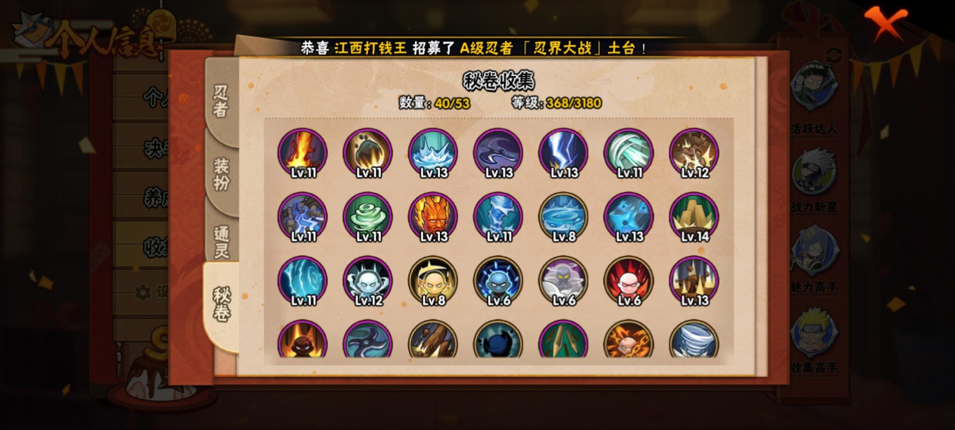[11995272]V8 8S忍 32A忍 13通灵 538W战力 可二次 社交场景限制 可修改实名 优质装备:宇智波佐助「永恒万花筒」,宇智波斑「秽土转生·解」,艾「忍界大战」,漩涡鸣人 「暴怒·第六尾」 S级忍者:自来也 「舞之豪杰」,宇智波鼬 「须佐能乎」,佩恩「天道」,波风水门