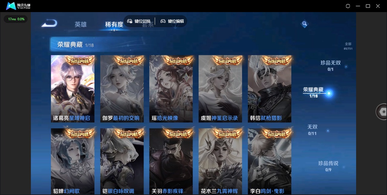 - [11607160]V6 1珍品传说 2传说 108英雄 105皮肤 可修改实名 女号 优质装备:器灵·落星盏 传说皮:续相思 珍宝阁皮:万物之道 限定皮:陌上桑,鸣野蒿 史诗皮:化蝶舞,星界战将,谪仙醉月,炽弈燎原,破空之剑,涂山红红,蒙犽顽岩魄,埋骨钱,遇见神鹿,冰冠公主,暗夜猫娘,猫狗日记-孙策,女仆咖啡,水果甜心,心灵骇客,诗语江南,缤纷独角兽,水晶猎龙者,圣诞恋歌,鹰眼统帅,魅力维加斯,滕王阁序