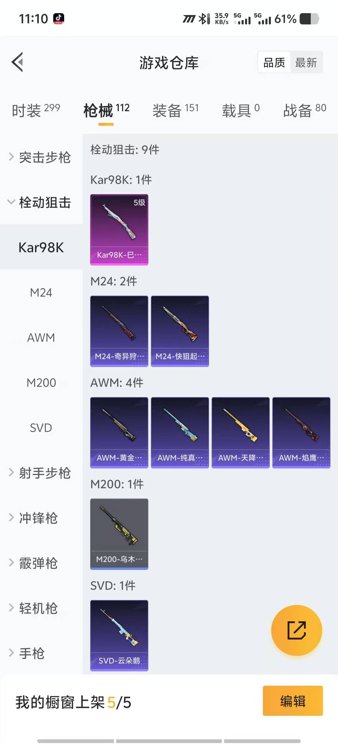 M416-风花雪月,M416-电玩时刻,GROZA-镜光银凌,AUG-暖羊咩咩,Kar98K-巳巳如意,MK12-雪月幻音,UMP45-量子极限