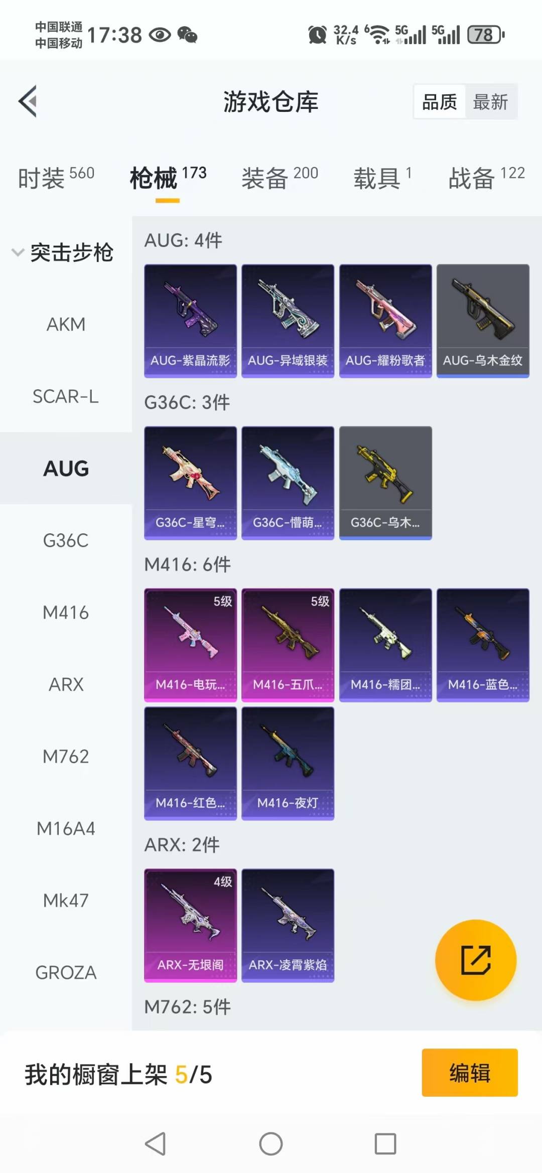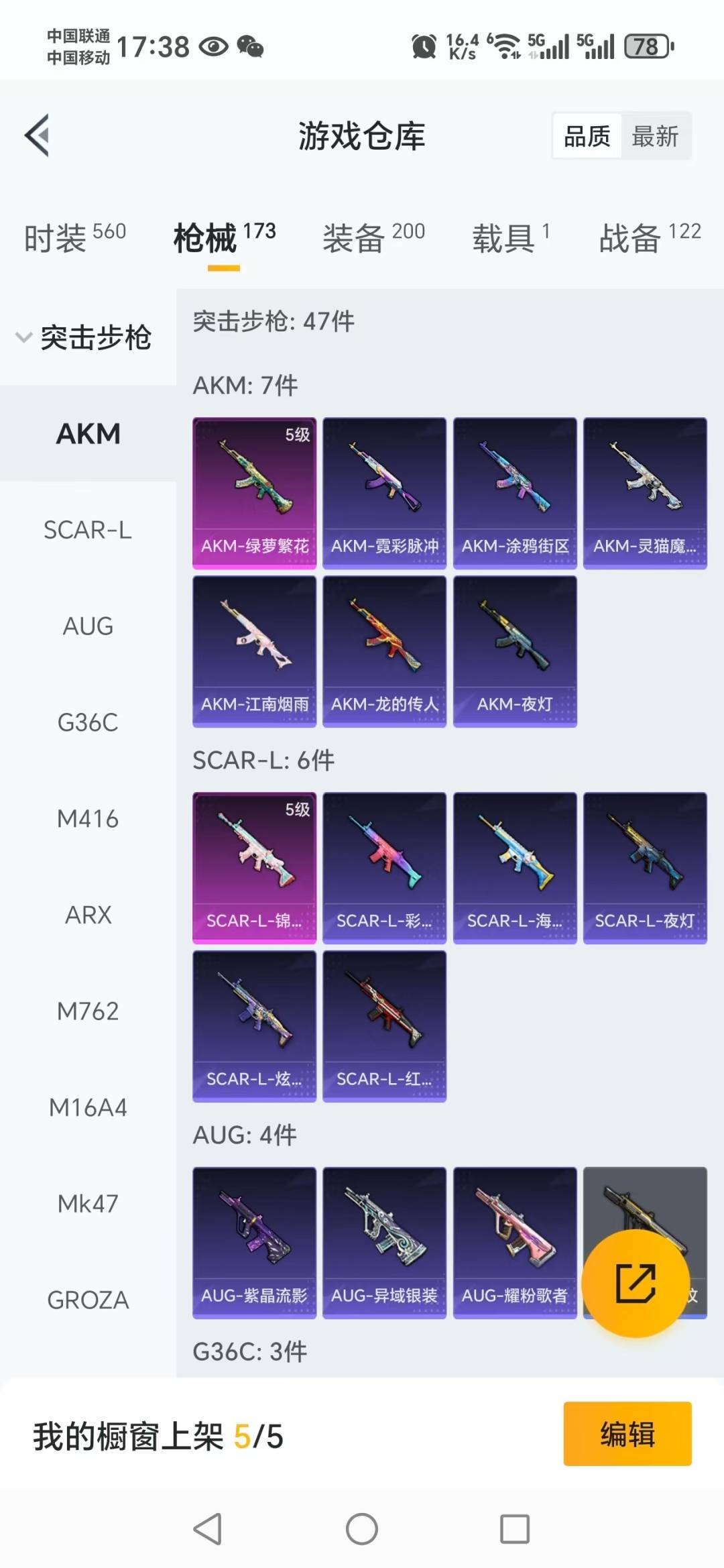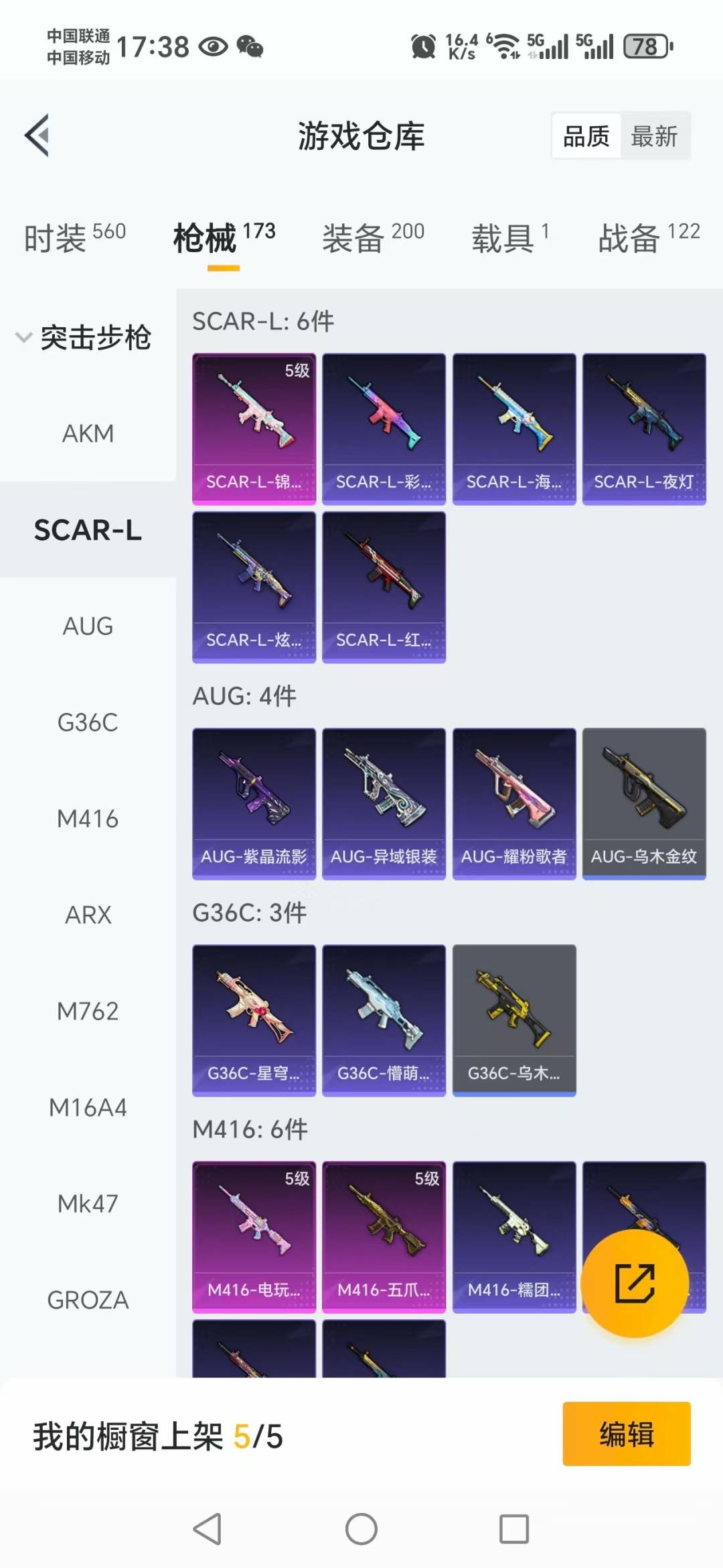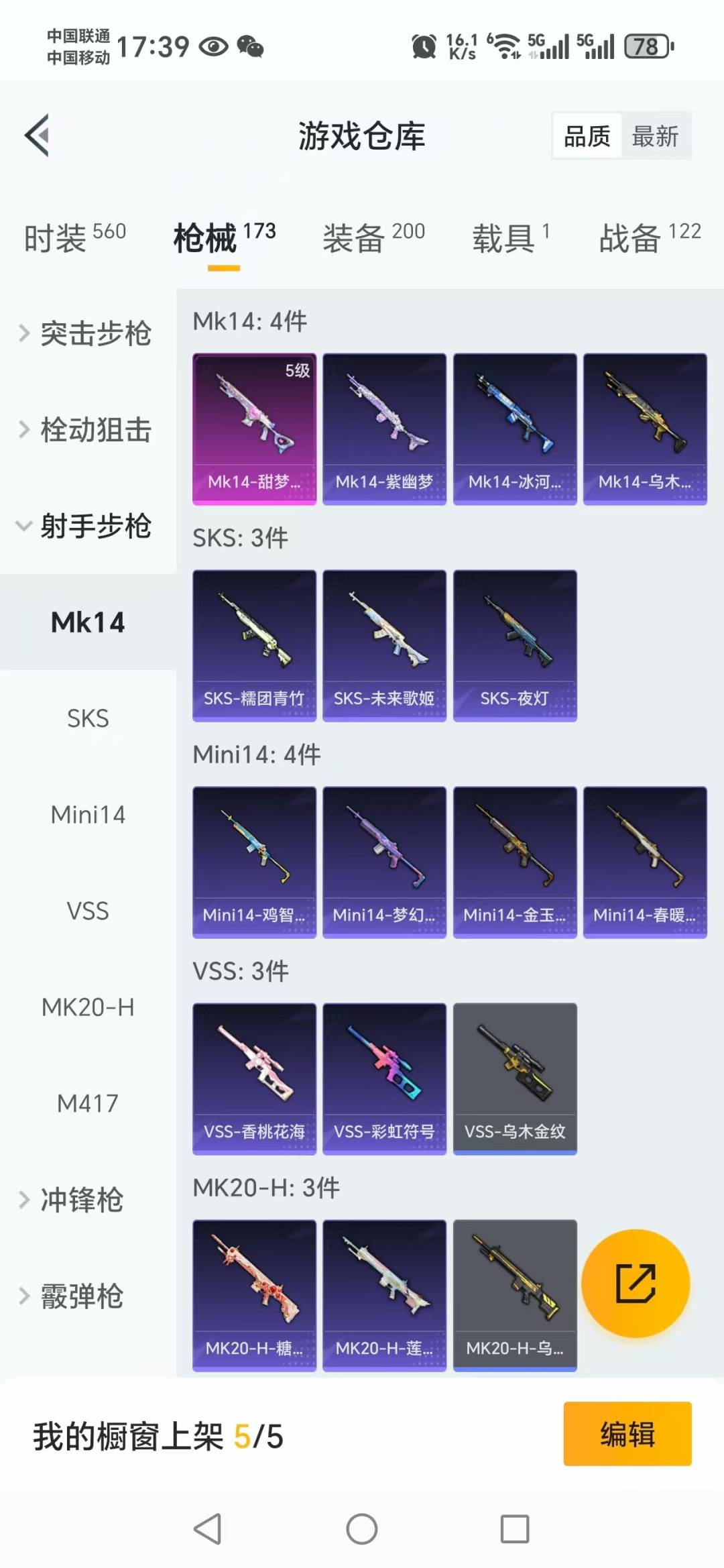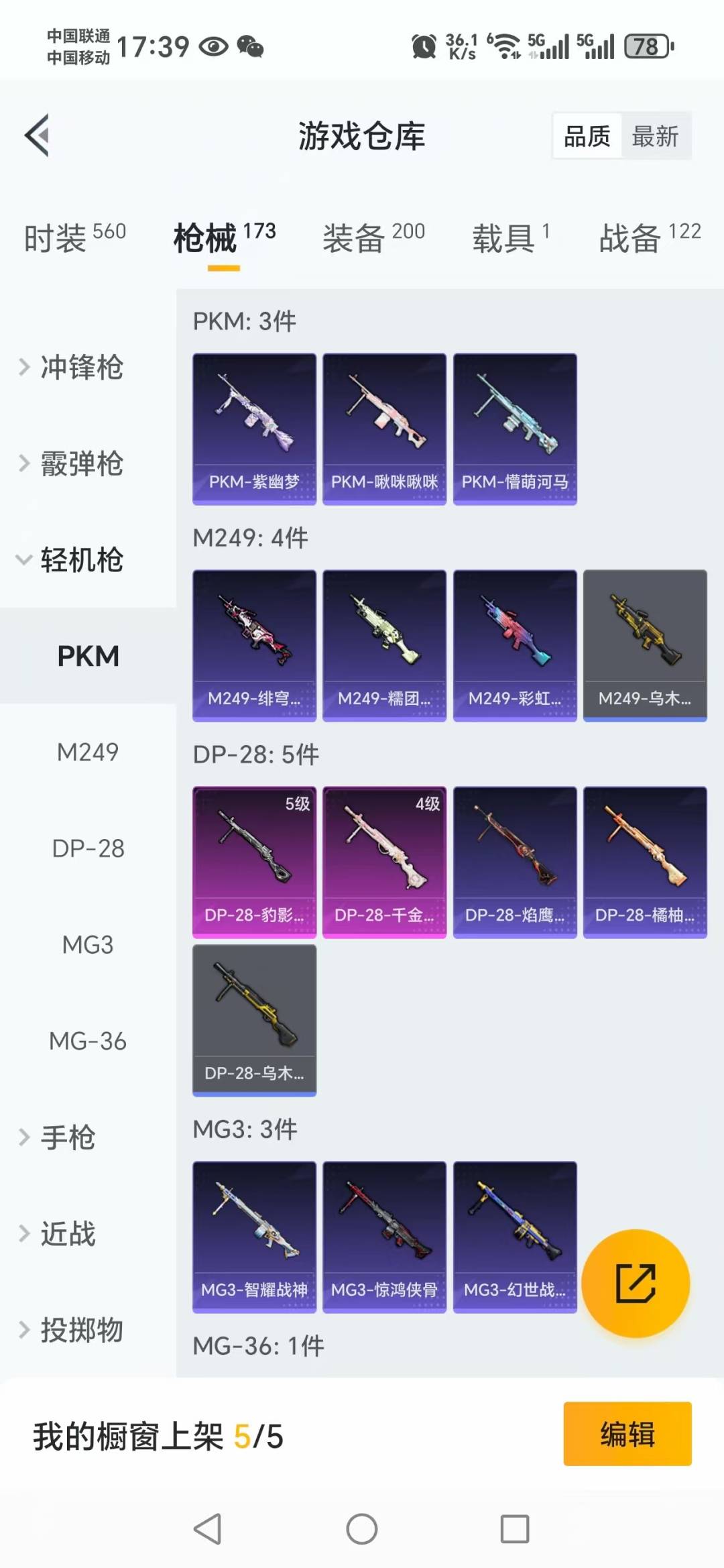 AKM-绿萝繁花,SCAR-L-锦绣绵绵,M416-电玩时刻,M416-五爪金龙,Kar98K-巳巳如意,DP-28-千金淑猫