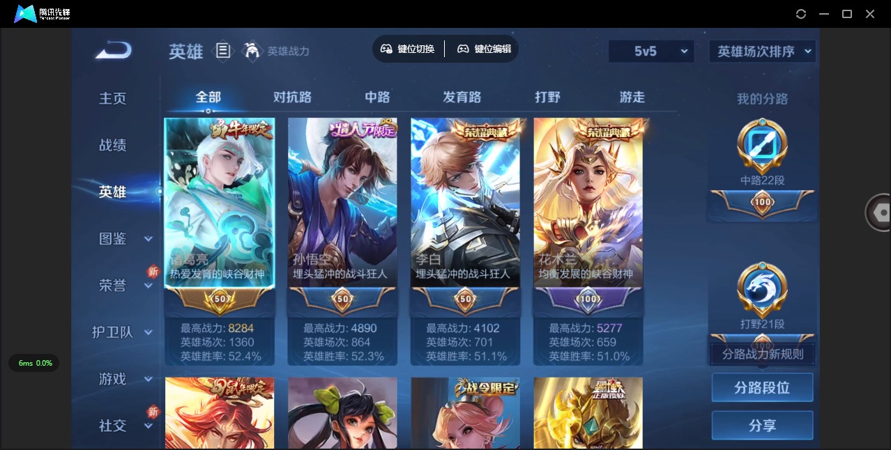 - [11864162]V6 4传说 106英雄 96皮肤 可修改实名 优质装备:猫影幻舞,仲夏夜之梦(大飞蛾) 珍宝阁皮:蔷薇恋人 限定皮:愿照·福禄聚(蔡文姬年限),鸣野蒿,五谷丰年,梁祝 史诗皮:化蝶舞,幻珠鲛人,夜落电台,遇见神鹿,特工魅影,江河有灵,末日机甲-吕布,乱世虎臣,女仆咖啡,水果甜心,心灵骇客,时之奇旅-安琪拉,暗隐猎兽者,拒霜思,缤纷独角兽,逐浪之夏,水晶猎龙者,箭羽风息,圣诞恋歌,鹰眼统帅