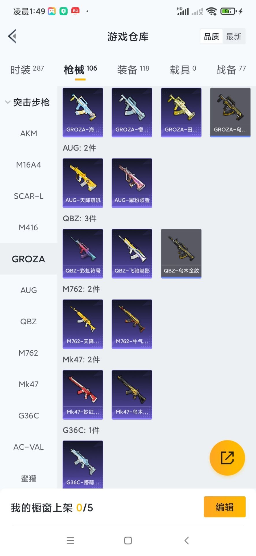 - [12038687]【暑期末清货/特价急出/永久包赔】:安卓 手Q-1粉装-6特效枪-1.6w热力值-1印记-28套装-50枪皮【特效枪等级】:GROZA-镜光银凌(五级),AUG-暖羊咩咩(五级),Kar98K-巳巳如意(五级),Mk14-甜梦熊击(五级),AMR-智耀战神(五级)【优质套装】:角色-冷漠罗丽