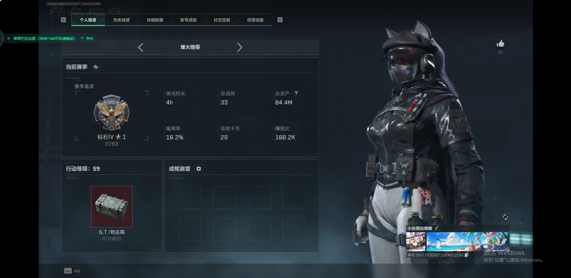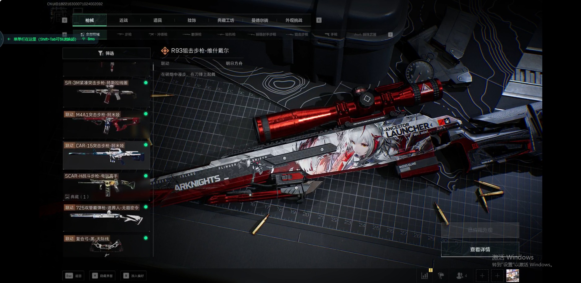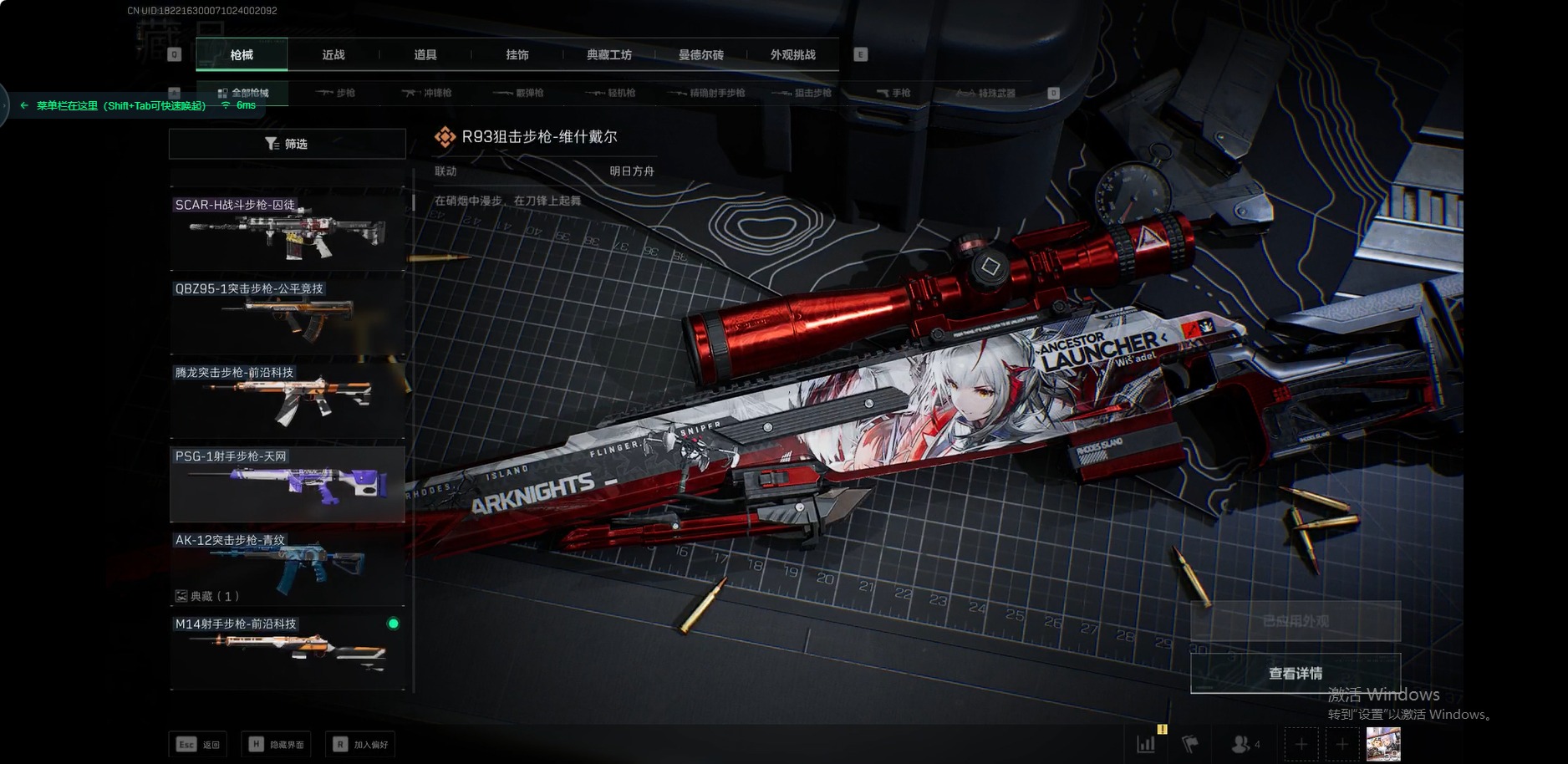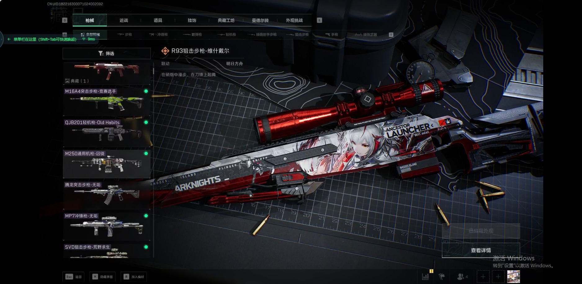 - [11606730]总资产:144.8M 1传说枪械 哈夫币:78.079K 进阶安全箱(9.17到期) 可二次 可修改实名 烽火地带段位:铂金 全面战场段位:无段位 传说武器皮肤:M4A1突击步枪-阿米娅 史诗武器皮肤:M16A4突击步枪-竞赛选手,SV-98狙击步枪-林中猎手