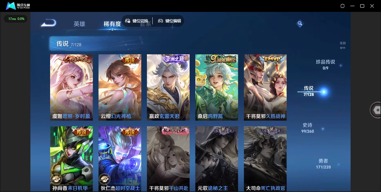 - [11983009]V9 6典藏 20传说 124英雄 428皮肤 可修改实名 优质装备:无限飓风号(高达),鸣剑·曳影,全息碎影(猴子典藏),赤影疾锋,弑枪猎影(韩信典藏),最初的交响(伽罗典藏),黄金射手座,云鹰飞将(小将军),绛天战甲(鸡嘴战神),猫影幻舞,久胜战神,炽阳神光,一念神魔,地狱火,胖达荣荣,时之恋人-刘备(电焊工),天秀幻梦,电玩·雷克斯 传说皮:幻光神枪 珍宝阁皮:万物之道,优雅恋人,玩趣恶龙 限定皮:愿照·九州拓(澜年限),鸣野蒿,至尊宝,傲雪梅枪,星穹之声,绯月行,神威(电光马子),飞衡(韩信年限),山海·碧波行(瑶年限),遇见飞天,高山流水,无限倾心-虞姬,齐天大圣,匿光决锋者,降魔,五谷丰年,青龙志(铠年限),游园惊梦,梁祝,御风骁将(吕布年限),天狼溯光者,天狼征服者,李小龙,逐梦之影,玄武志(苏烈年限),朱雀志(守约年限),默契交锋-花木兰,孙行者,大圣娶亲,引擎之心,冰霜恋舞曲,云端筑梦师,蜜橘之夏,匿光追影者,枫霜尽,匿光启智者,时之奇旅-妲己,梦圆繁星,山海·玄木吟(马可年限) 史诗皮:器灵·浮梦炉,化蝶舞,灵蛊蚀心,星界战将,龙之律动,石田雨龙,茶境仙,蔬乡物语(鲁班七号),百相守梦-百里守约,紫霞仙子,苍穹之光,电玩小子(小书包),白龙吟,黄金分割率,特工魅影,千年之狐,永昼,江河有灵,魅语,百解令(蒙犽),高渐离燃音魔法,蒙恬荣光圣徽,无限星赏官,匿光破解者,冰冠公主,青蛇,偶像歌手,白蛇,晚萤,电玩·爆裂旋风,暗夜猫娘,龙骑士(小龙虾),末日机甲-吕布,猫狗日记-孙策,猫狗日记-大乔,时之恋人-孙尚香,乱世虎臣,节奏热浪,修罗,女仆咖啡,摇滚巨星,水果甜心,绅士熊喵,天才门将,星夜王子,心灵骇客,时之奇旅-安琪拉,功夫厨神,德古拉伯爵,暗隐猎兽者,幽灵船长,鬼剑武藏,暗渊魔法,心灵战警,乐园奇幻夜,天秀·启明,舞动绿茵,地狱岩魂,诗语江南,纤云弄巧,繁星吟游(呼啦呼啦),拒霜思,缤纷独角兽,乘风破浪,逐浪之夏,龙鼓争鸣,月团寄思,水晶猎龙者,曙光守护者,热力回旋,箭羽风息,唤灵魅影,金属风暴,圣诞狂欢,圣诞恋歌,鹰眼统帅,暗夜贵公子,魅力维加斯,黎明之约,雪上飞焰,赏金猎手,奇遇舞章,天秀幻梦,滕王阁序,顽趣-阿古朵,无心,未来纪元-赵云
