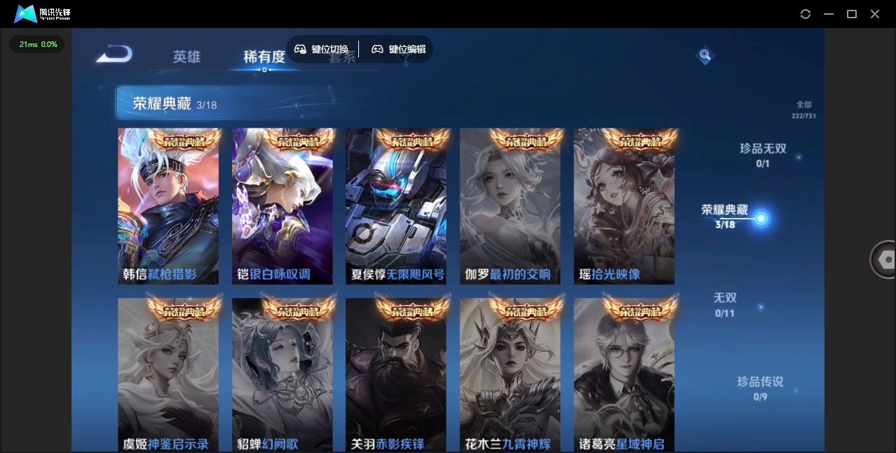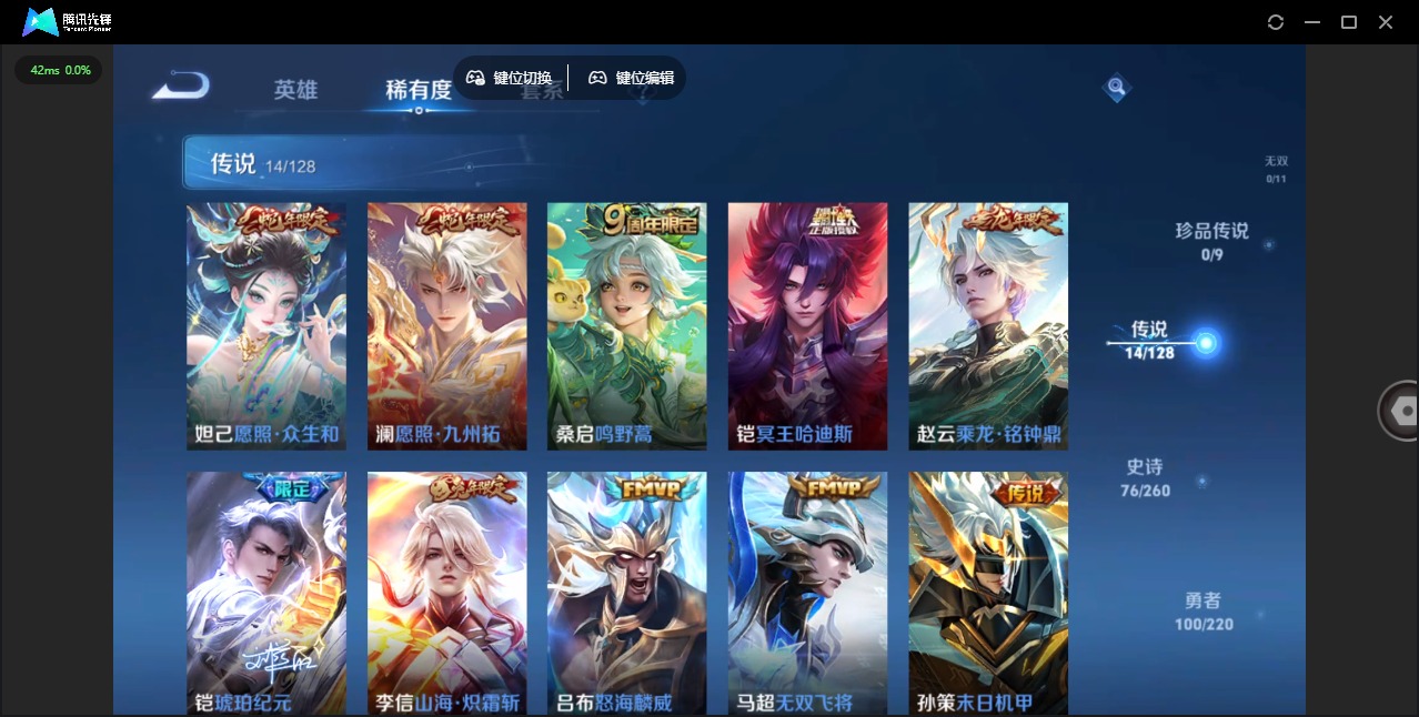 - [11530219]V6 1珍品传说 5传说 85英雄 81皮肤 可修改实名 女号 优质装备:黑崎一护,黄金狮子座,地狱之眼,涂山容容 传说皮:幻光神枪 限定皮:愿照·九州拓(澜年限),逐霄战戟,鸣野蒿 史诗皮:鸭鸭历险记-刘禅,化蝶舞,龙之律动,百相守梦-周瑜,茶境仙,百相守梦-百里守约,百相守梦-黄忠,紫霞仙子,千年之狐,无限星赏官,节奏热浪,水果甜心,鬼剑武藏,暗渊魔法,心灵战警,舞动绿茵,水晶猎龙者,曙光守护者,圣诞恋歌,鹰眼统帅,魅力维加斯