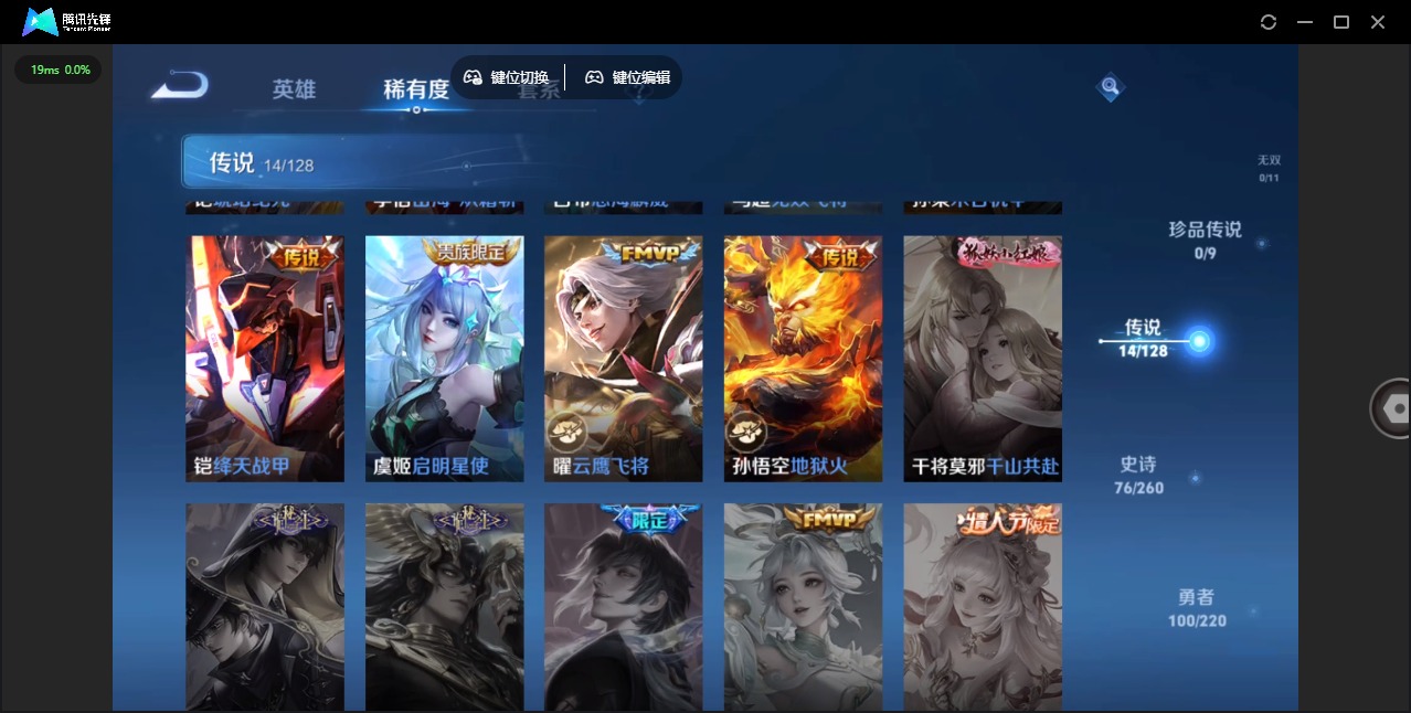 - [11529179]V6 4传说 120英雄 108皮肤 可修改实名 传说皮:地狱火,末日机甲-孙尚香(绿蚂蚱) 珍宝阁皮:蔷薇恋人 限定皮:至尊宝,凤求凰(白切鸡),飞衡(韩信年限),瑞麟志(木兰年限),青龙志(铠年限),祈雪灵祝(雪兔子),李小龙,大圣娶亲 史诗皮:白龙吟,特工魅影,偶像歌手,乱世虎臣,星夜王子,暗隐猎兽者,纤云弄巧,金属风暴,鹰眼统帅,魅力维加斯