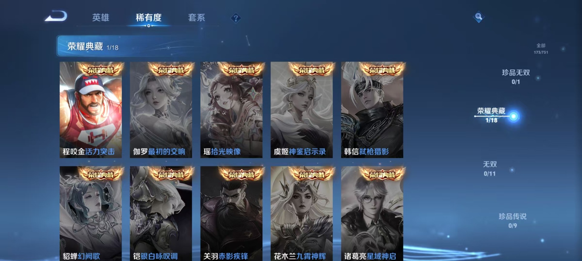 - [11526713]V10 6典藏 62传说 126英雄 527皮肤 典藏英雄武则天 可修改实名 优质装备:天鹅之梦(小乔典藏),倪克斯神谕(宇宙婆娘),无限飓风号(高达),鸣剑·曳影,全息碎影(猴子典藏),银白咏叹调(倪克斯侍卫),黄金狮子座,黄金射手座,冠军飞将,云鹰飞将(小将军),绛天战甲(鸡嘴战神),黄金白羊座,猫影幻舞,久胜战神,炽阳神光,一念神魔,云霓雀翎,末日机甲-孙尚香(绿蚂蚱),地狱火,仲夏夜之梦(大飞蛾),零号·赤焰,海洋之心,地狱之眼,飞鸢探春,胖达荣荣,乞巧织情,时之恋人-刘备(电焊工),淬星耀世,超时空战士-狄仁杰,末日机甲-孙策,花朝如约(花篮子),山海·炽霜斩(李信年限),山海·琳琅生(小乔年限),山海·苍雷引(电光曜子),艾琳觅芳踪,金乌负日,黄金天蝎座,云中君群星魔术团,朵莉亚心动手记 传说皮:乘龙·问璇玑(孙尚香年限),乘龙·铭钟鼎(赵云年限),乘龙·淬吴钩(孙策年限),貂蝉曦玄引,吕布曦玄引,典韦战鼓燎原,落雪白狼,幻光神枪 珍宝阁皮:妄想食味,优雅恋人,蔷薇恋人,女武神 限定皮:愿照·九州拓(澜年限),愿照·福禄聚(蔡文姬年限),愿照·岁时盈(虞姬年限),愿照·山河定(司空震年限),愿照·众生和(妲己年限),愿照·千秋盛(女娲年限),逐霄战戟,鸣野蒿,至尊宝,白虎志(电光耗子),凤求凰(白切鸡),凤凰于飞,太华(伽罗年限),梅西,武陵仙君(小桃花),寅虎·展翼(孙膑年限),魔法小厨娘,白晶晶,时雨天司(水龙头),神威(电光马子),飞衡(韩信年限),玄嵩(庄周年限),山海·碧波行(瑶年限),无限倾心-项羽,瑞麟志(木兰年限),遇见飞天,无限倾心-虞姬,齐天大圣,五谷丰年,青龙志(铠年限),冰锋战神,幽恒(沐浴露),武圣,天狼运算者,游园惊梦,梁祝,御风骁将(吕布年限),天狼狩猎者,龙胆,逐梦之翼,逐梦之星,岱宗(典韦年限),天狼征服者,奔雷神使(牛魔年限),祈雪灵祝(雪兔子),天狼绘梦者,李小龙,逐梦之影,逐梦之光,玄武志(苏烈年限),朱雀志(守约年限),永曜之星,辉光之辰,如梦令-嫦娥,如梦令-后羿,霸王别姬-项羽,霸王别姬-虞姬,奇迹圣诞,默契交锋-兰陵王,默契交锋-花木兰,孙行者,猪悟能,一生所爱,大圣娶亲,引擎之心,天魔缭乱,青春决赛季,冰霜恋舞曲,云端筑梦师,蜜橘之夏,热情桑巴,神奇女侠,美猴王,寅虎·御盾(廉颇年限),天降福星,山海·