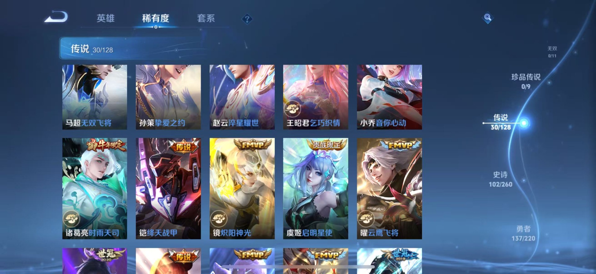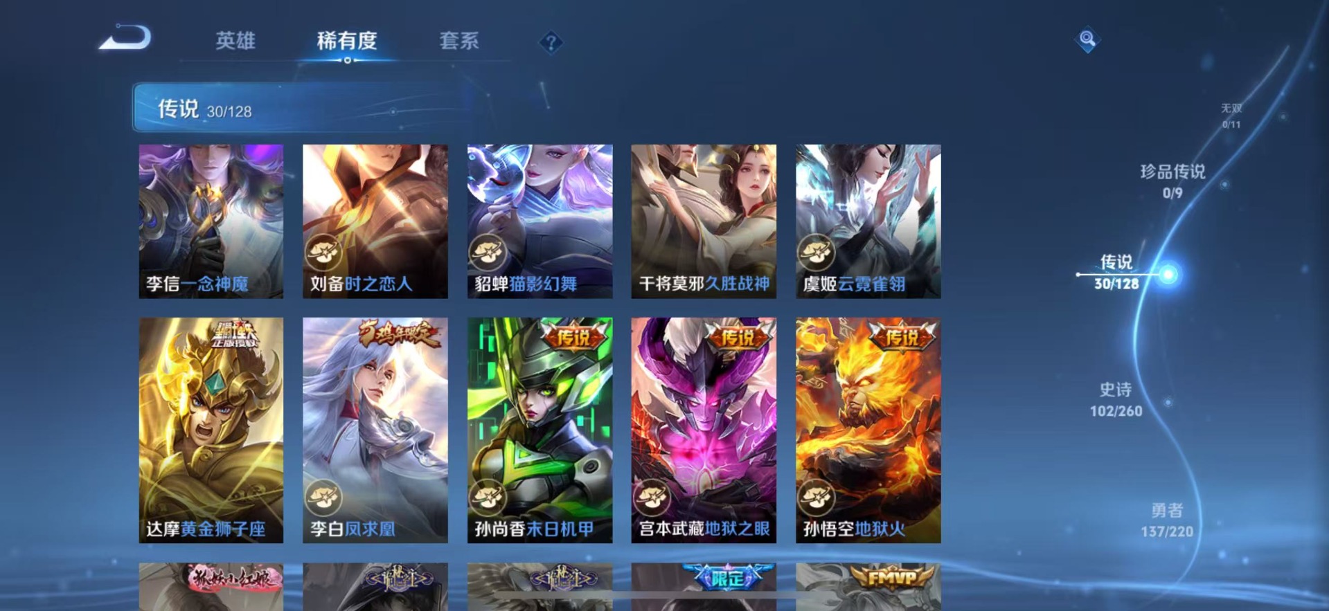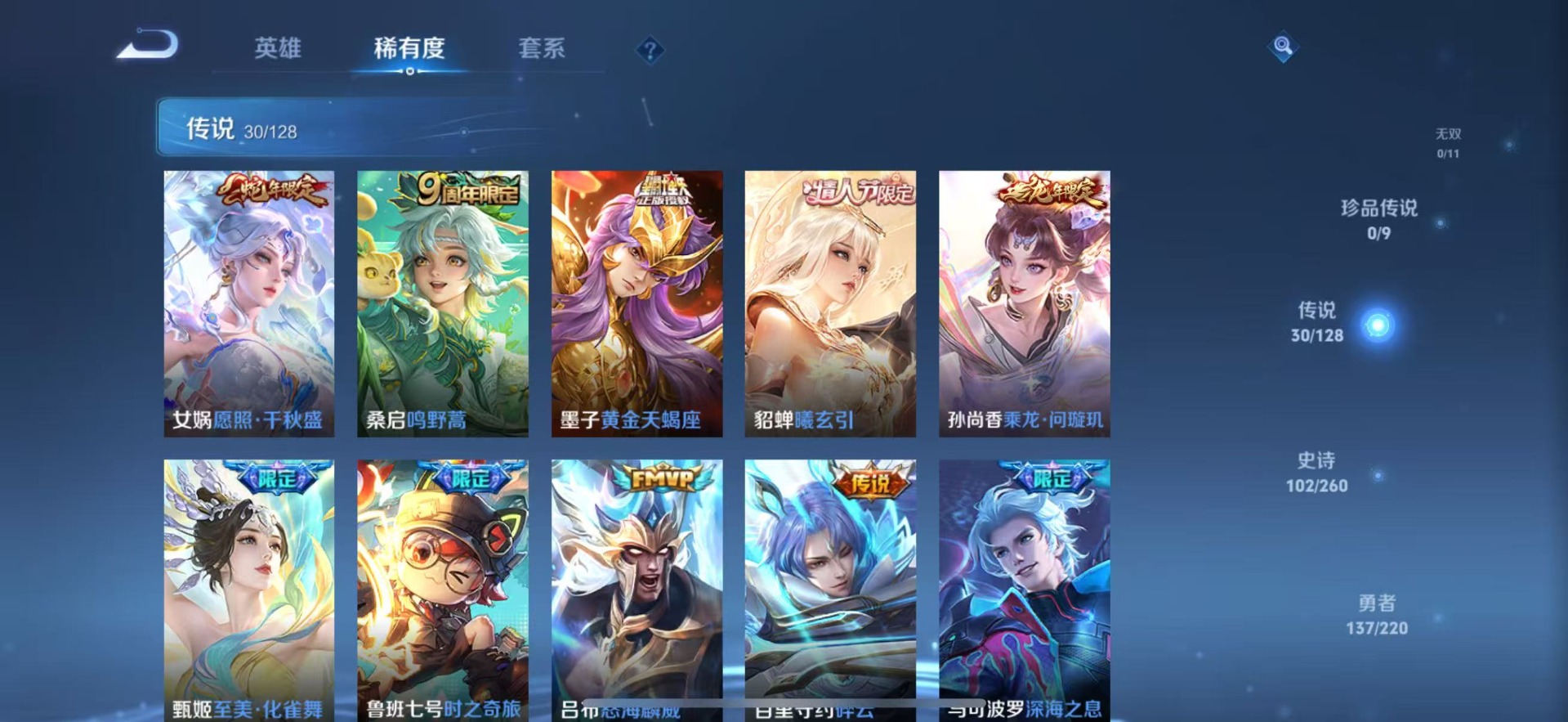 - [12298284]【商品标题】:安卓Q-V6-至尊星耀II段位-125英雄-305皮肤-2典藏-0珍品无双-0无双-0珍品传说-17传说-78史诗 【荣耀典藏】:李白鸣剑曳影,铠银白咏叹调 【传说皮肤】:澜愿照九州拓,桑启鸣野蒿,孙策乘龙淬吴钩,赵云乘龙铭钟鼎,李白诗剑行,狄仁杰神器狴犴令,马超无双飞将,西施游龙清影,诸葛亮时雨天司,虞姬启明星使,李信一念神魔,刘备时之恋人,貂蝉猫影幻舞,干将莫邪久胜战神,达摩黄金狮子座,百里玄策白虎志,宫本武藏地狱之眼 【限定皮肤】:蒙犽顽岩魄,姜子牙天穹之誓,杨戬破阵退雄兵,狄仁杰阴阳师,赵云皇家上将,嬴政优雅恋人,孙尚香蔷薇恋人,鲁班七号狮舞东方,庄周高山流水,高渐离玩趣恶龙,阿轲迷踪丽影,扁鹊炼金王,芈月白晶晶,吕布猎兽之王,吕布御风骁将,周瑜赤莲之焰,元歌云间偶戏,元歌无心,夏侯惇朔风刀,典韦蓝屏警告,马可波罗暗影游猎,马可波罗山海玄木吟,狄仁杰魔术师,狄仁杰万华元夜,狄仁杰神器狴犴令,达摩沙漠行僧,项羽海滩派对,老夫子醍醐杖,程咬金演武夺筹,刘邦夺宝奇兵,兰陵王驯魔猎人,兰陵王金庭之子,亚瑟潮玩骑士王,孙悟空至尊宝,牛魔御旌,后羿辉光之辰,后羿如梦令,张飞虎魄,李元芳银河之约,李元芳云中旅人,虞姬启明星使,钟馗神迹守卫,钟馗驱傩正仪,女娲朔望之晖,雅典娜单词大作战,雅典娜黎明之约,蔡文姬繁星吟游,鬼谷子原初探秘者,鬼谷子五谷丰年,诸葛亮时雨天司,苏烈千军破阵,百里玄策白虎志,百里玄策原初追逐者,弈星混沌棋,梦奇顽趣,沈梦溪星空之诺,明世隐疑决卦,裴擒虎李小龙,裴擒虎擒涛扼浪,米莱狄御霄,云中君纤云弄巧,盾山御銮,猪八戒西部大镖客,上官婉儿梁祝,嫦娥暖冬兔眠,蒙犽狂想玩偶喵,鲁班大师探海日志,桑启海盐诗旅,暃星界游侠,艾琳女武神,阿古朵江河有灵,张良古海寻踪,蒙犽百解令,高渐离燃音魔法,妲己灵卜魔法,鬼谷子天穹祈灯,伽罗琥珀纪元,孙策乘龙淬吴钩,赵云乘龙铭钟鼎,沈梦溪龙舞盛年,鲁班七号蔬乡物语,李元芳蔬乡物语,刘邦剑破天穹,程咬金群星魔术团,镜青焰无极,项羽苍威无极,周瑜熔金海岸 【年限皮肤】:百里玄策白虎志,后羿辉光之辰,吕布御风骁将,诸葛亮时雨天司,张飞虎魄,马可波罗山海玄木吟,孙策乘龙淬吴钩,赵云乘龙铭钟鼎 【赛季限定】:扁鹊炼金王,夏侯惇朔风刀,狄仁杰万华元夜,达摩沙漠行僧,老夫子醍醐杖,程咬金演武夺筹,兰陵王金庭之子,张良古海寻