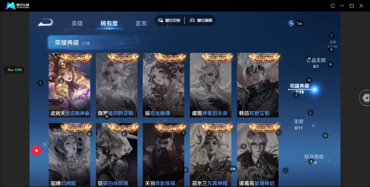 - PX_2080809-76 安卓QQ/至尊星耀/321皮肤/125英雄/2典藏/0珍品无双/0无双/1珍品传说/26传说/100史诗/9稀有英雄 【1 珍品传说】怪盗基德 马可波罗, 【2 典藏皮肤】全息碎影 孙悟空,神鉴启示录 虞姬, 【26 传说皮肤】枫霜尽 橘右京,启明星使 虞姬,云霓雀翎 虞姬,白虎志 百里玄策,李逍遥 曜,地狱火 孙悟空,神器·狴犴令 狄仁杰,凤求凰 李白,诗剑行 李白
