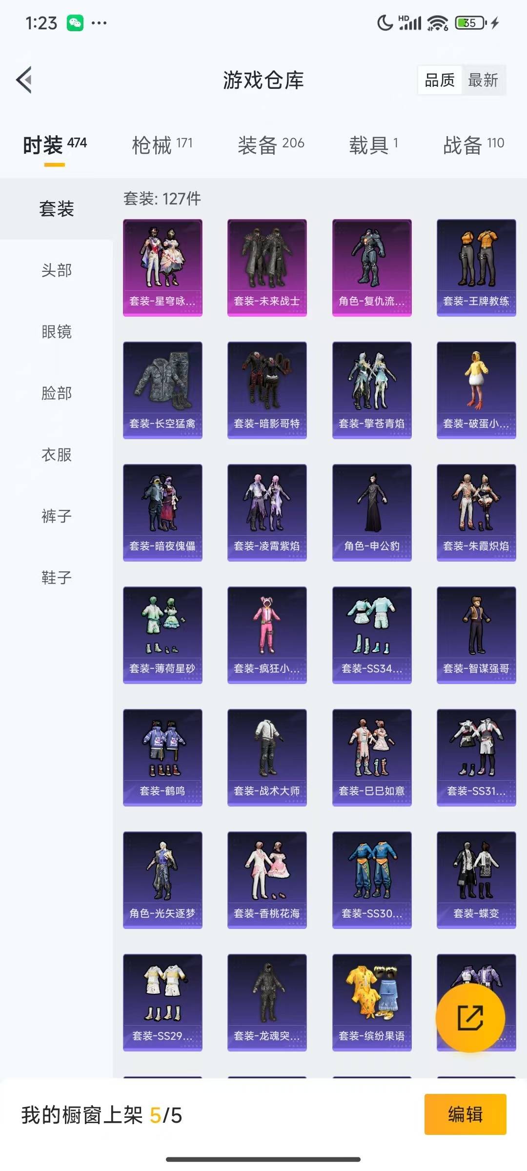 [12002476]3粉装 5特效枪 1载具 6印记 可二次 可修改实名 身法装备:暗影哥特(红眼罩) 优质装备:玛莎拉蒂Quattroporte(夜幕蓝),M416五爪金龙,未来战士,SCAR-L青春物语,七级SCAR-L-青春物语,七级M416-五爪金龙,星穹咏叹调,Kar98K-巳巳如意 热门装扮:复仇流浪者,迅捷狂鲨,呆萌铁蟹 稀有枪皮:MG-36-沧焰双生,DP-28-豹影疾电 五级特效枪:五级DP-28-豹影疾电,五级MG-36-沧焰双生 四级特效枪:四级Kar98K-巳巳如意 紫色装扮:SS23特训,SS30特训套装,SS31特训套装,SS21特训,田园牧歌,轻风白浪,SS22特训,白兰地假日,吉莉礼服,坚韧舞者,夏日音浪,幻世战舞者,幻影武者,冰川特警,萌趣咩咩,娇憨猪猪,SS16特训,遗落祭司,瑞龙福将,团圆交子,SS17特训,SS14特训,萌趣颜团子,青春冒险家,潮流游乐家,SS15特训,暗夜傀儡,SS20特训,醇脆可可,浑天鲲鹏,甜心亚梦,虚音幻奏,猎梦纪元,梦幻奶油,暖心橘喵,怒火燎原,冰川谧蓝,异彩先驱,缤纷焰火,SS18特训,英勇保护者,雪兔飞飞,飞驰魅影,音速流光,极速竞梦,SS19特训,黄色名流,飞行日记,魅力单车,鹤鸣,麻辣教官,黎明保卫者,龙腾端午,龟仙人,龙魂突击队,蝶变,香桃花海,霓虹街区,酷潮明星,霓虹极客,野性战心,长空猛禽,雪山精英,涂山之恋,湖蓝色名流,滨海假日,滨海厨神,灰色格斗者,炫蓝之夏,热血青春,牛气冲天,牛气满满,战地督导,探宝勇士,柠萌假日,格斗先锋,沙漠兵团,沙漠毒蛇,缤纷果语,蓝彩潮人,空投萌叽,狂沙舞者,王牌教练,甜蜜告白,甜蜜熊情侣,疯狂小兔子,登山爱好者,白熊同盟,白色伏地魔,破蛋小黄鸡,SS29特训,SS28特训,玉兔迎春,巳巳如意,智谋强哥,竞技名士,光矢逐梦,暗影哥特(红眼罩),惊鸿侠骨,粉红小猪,甜梦熊熊,神气柴柴,懵萌河马,SS24特训(SS24特训套装),SS25特训,锦衣飞扬,晨曦薄雾,SS26特训,精神漫游,青玉碎影,绯格组合,光之冒险,冰冻风暴,弄潮海豚,旷野奇兵,海上生明月,金耀舞者 优质战备:橘柚倾心降落伞,旋转彩虹降落伞,海螺星光降落伞,环太平洋降落伞,飒粉甜心降落伞,幻影战神降落伞,暗夜玫瑰降落伞,天之羽翼降落伞