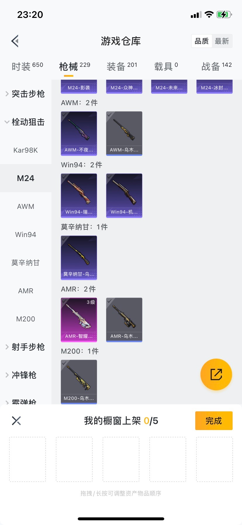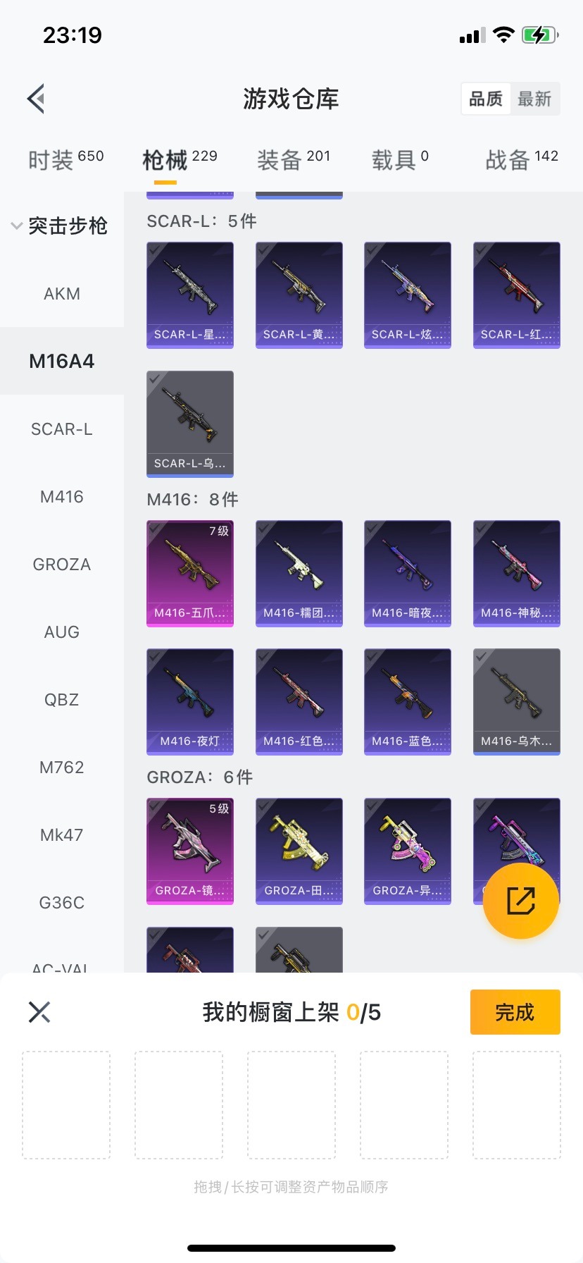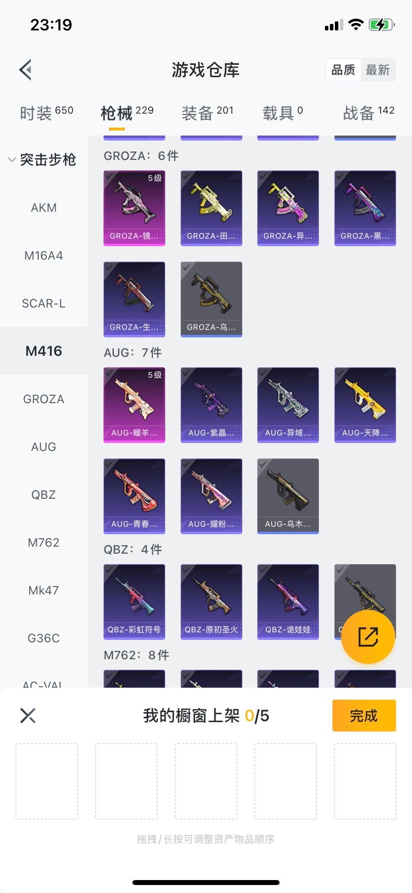 M416-五爪金龙,GROZA-镜光银凌,AUG-暖羊咩咩,Kar98K-巳巳如意