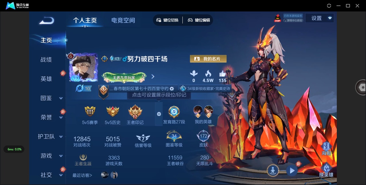 - [11713974]V7 1典藏 6传说 124英雄 238皮肤 可修改实名 优质装备:鸣剑·曳影,一念神魔,地狱之眼,李逍遥,挚爱之约 珍宝阁皮:优雅恋人,女武神 限定皮:逐霄战戟,鸣野蒿,武陵仙君(小桃花),神威(电光马子),高山流水,五谷丰年,梁祝,天狼绘梦者,李小龙,逐梦之影,孙行者,猪悟能,大圣娶亲,百木心枪,唐三藏 史诗皮:星界战将,谪仙醉月,石田雨龙,决胜骁骑,紫霞仙子,电玩小子(小书包),黄金分割率,特工魅影,千年之狐,永昼,魅语,蒙恬荣光圣徽,偶像歌手,暗夜猫娘,猫狗日记-孙策,猫狗日记-大乔,乱世虎臣,节奏热浪,修罗,女仆咖啡,水果甜心,绅士熊喵,星夜王子,心灵骇客,时之奇旅-安琪拉,功夫厨神,德古拉伯爵,暗隐猎兽者,幽灵船长,鬼剑武藏,暗渊魔法,心灵战警,天秀·启明,地狱岩魂,纤云弄巧,繁星吟游(呼啦呼啦),拒霜思,缤纷独角兽,乘风破浪,逐浪之夏,水晶猎龙者,曙光守护者,箭羽风息,金属风暴,原初追逐者,圣诞狂欢,圣诞恋歌,鹰眼统帅,魅力维加斯,黎明之约,天秀·音浪,无心