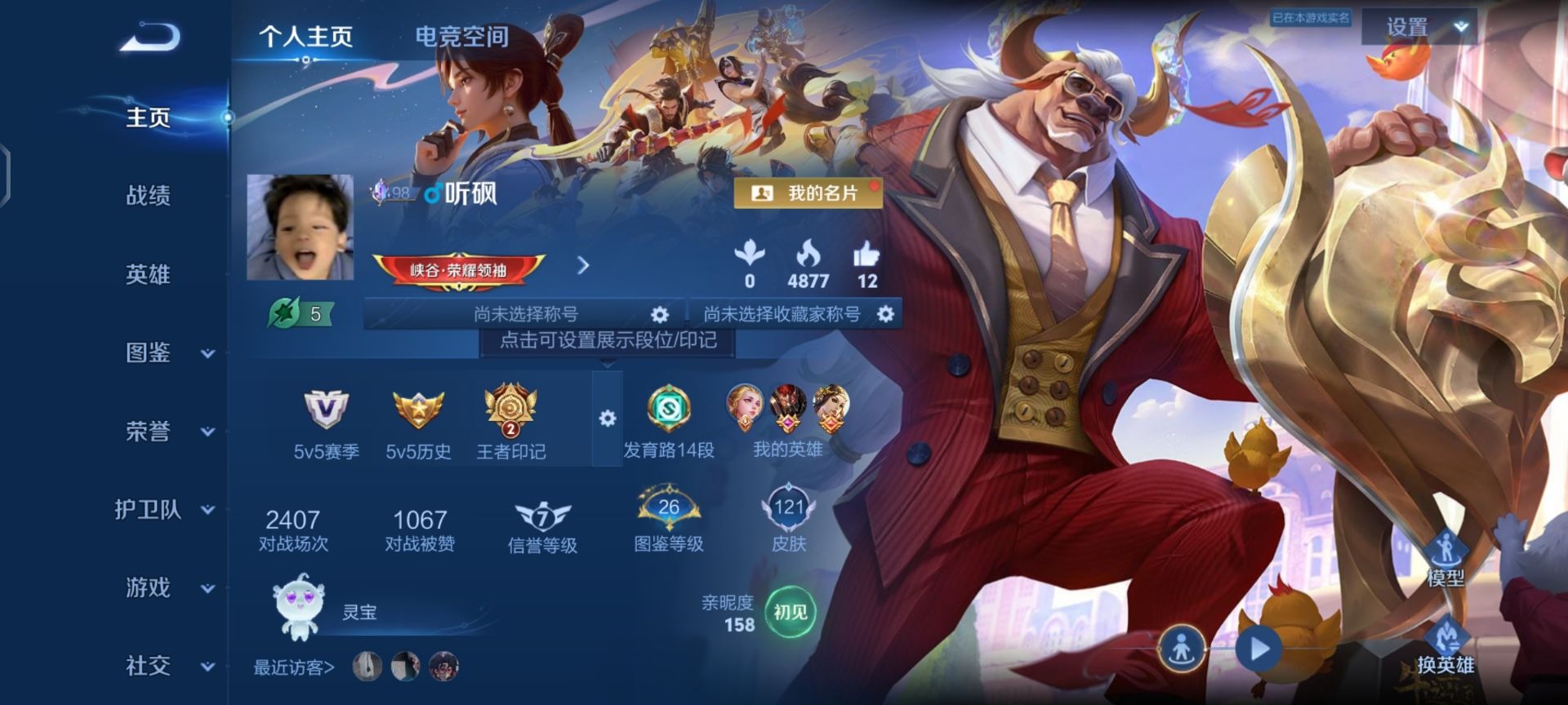 - PX_2093851-实名: 可修改 贵族等级: V8 英雄数: 122 皮肤数: 226 荣耀水晶: 拾光映像 珍品传说: 江户川柯南,时之奇旅-孙策 传说皮: 音你心动-小乔,花朝如约,追逃游戏(安琪拉),电玩·雷克斯,灼幽烈阳,鲁班七号-时之奇旅,大乔-时之奇旅,乘龙·问璇玑,牧神诗旅,玄雷天君,幻光神枪 限定皮: 凤凰于飞,五谷丰年,至美·乘鲤谣,鸣野蒿,陌上桑,逐霄战戟,愿照·众生和,愿