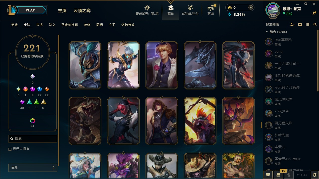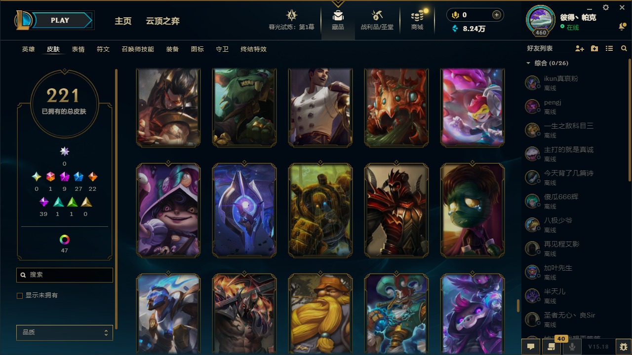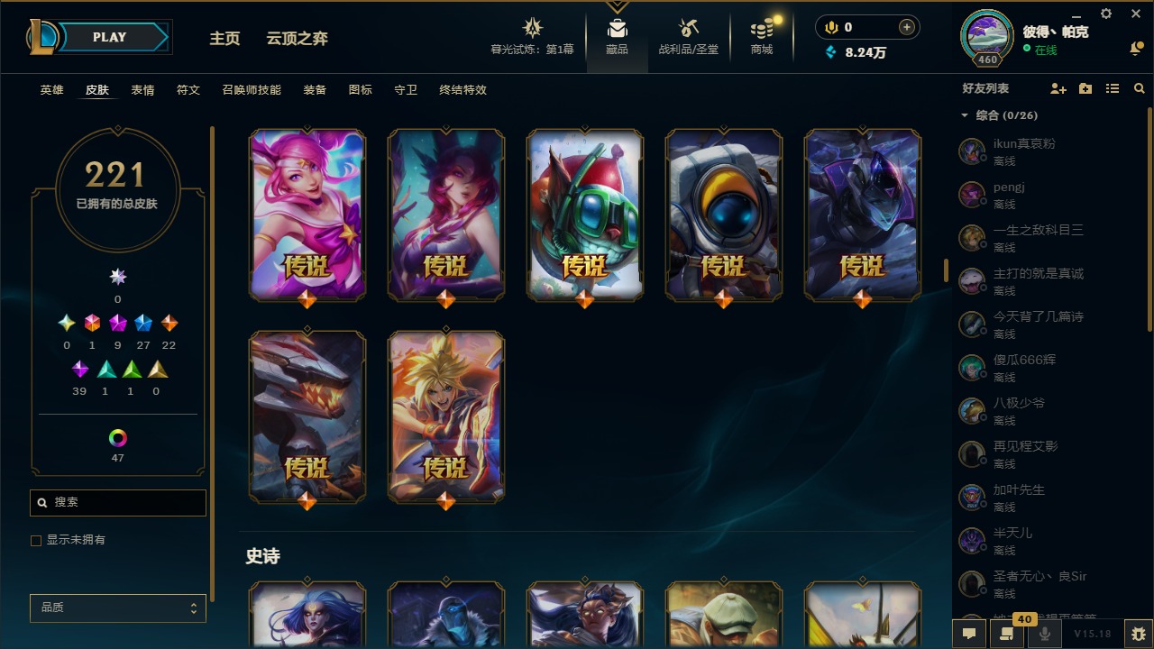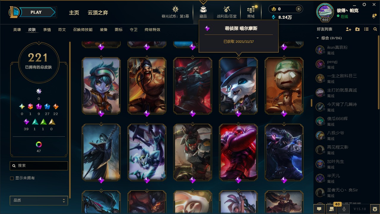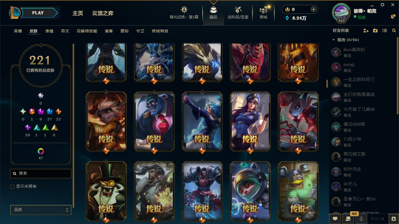 [12003082]1终极 9神话 27限定 22传说 39史诗 221皮肤 62炫彩 171英雄 可二次 可修改实名 优质装备:至臻 神龙尊者均衡之龙 沃利贝尔,源代码 乐芙兰,防爆天使 凯尔,暗影 沃里克,都铎王朝 图奇,红桃杰克 崔斯特,未来战士,至臻 花仙使者 卡特琳娜,弹幕天使 卡莎 炽天使·勇敢,无畏骑士 瑟庄妮 赤子初心,至臻 天龙之子 伊泽瑞尔,可爱可爱粉红红 布里茨,净雪之月 莫甘娜 冬虹,殿堂传奇 乐芙兰 登神,魔女 阿狸 饕餮,殿堂传奇 乐芙兰,水晶掠夺者 卡兹克,魔女 阿卡丽 虚荣 至臻:殿堂传奇 乐芙兰,水晶掠夺者 卡兹克 海克斯:海克斯 雷克顿,海克斯 克格莫 情人节限定:甜心宝贝 安妮 赛季限定皮:胜利凤凰 艾尼维亚,胜利剑圣 易,胜利女神 娑娜,胜利巨口 克格莫,胜利之王 泰达米尔 冠军限定系列:S3 SKT T1 劫,S3 SKT T1 婕拉,S5 SKT T1 阿利斯塔,S5 SKT T1 瑞兹,S6 SKT T1 球女,S8 IG 卡莎,S9 FPX 普朗克,S11 EDG 佛耶戈 冰雪节限定:魄罗骑士 瑟庄妮,圣诞精灵 崔丝塔娜,邪恶圣诞老人 维迦,雪默丁格,雪装 奈德丽 泳池派对:泳池派对 吉格斯,泳池派对 菲奥娜 年限:点心宝贝 阿木木,天龙之子 斯莫德,猴年 莫甘娜 周年:10周年 安妮
