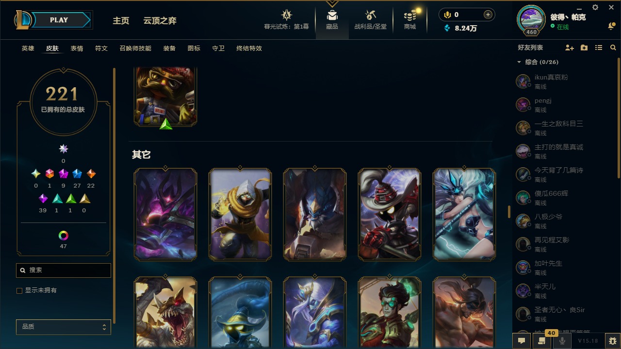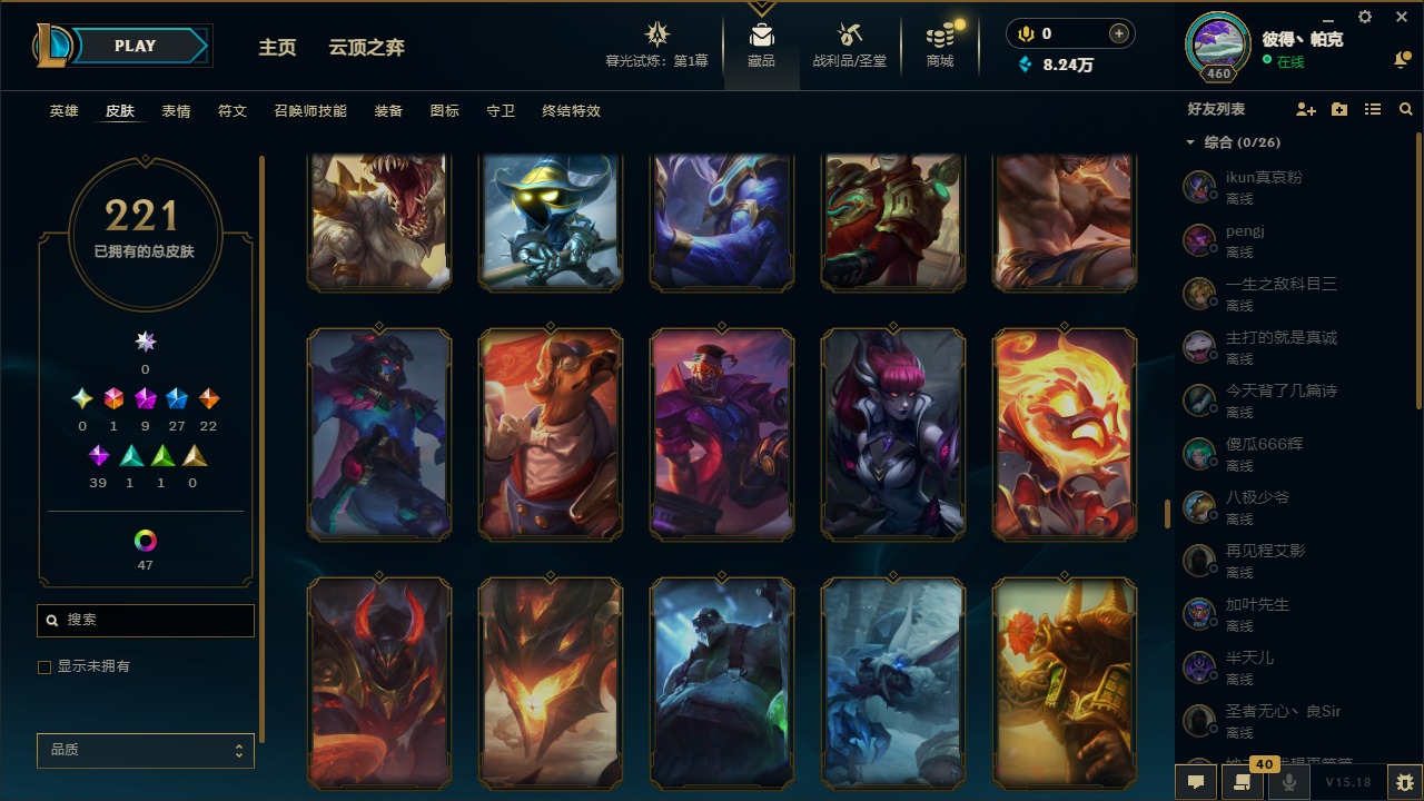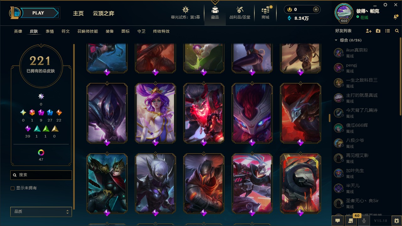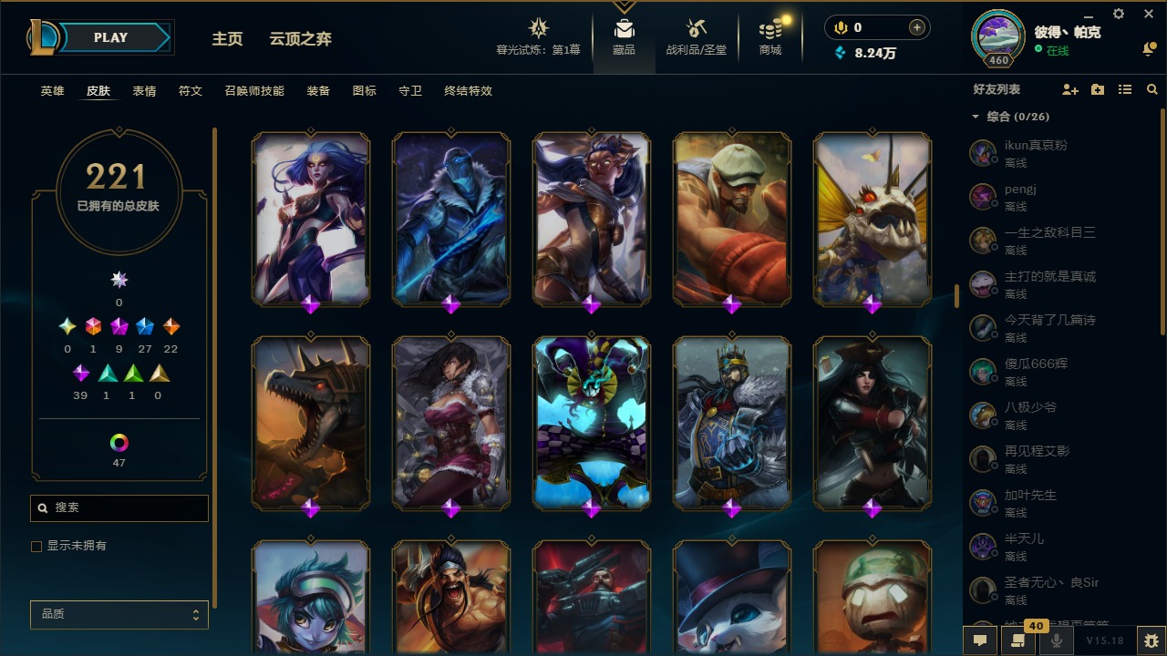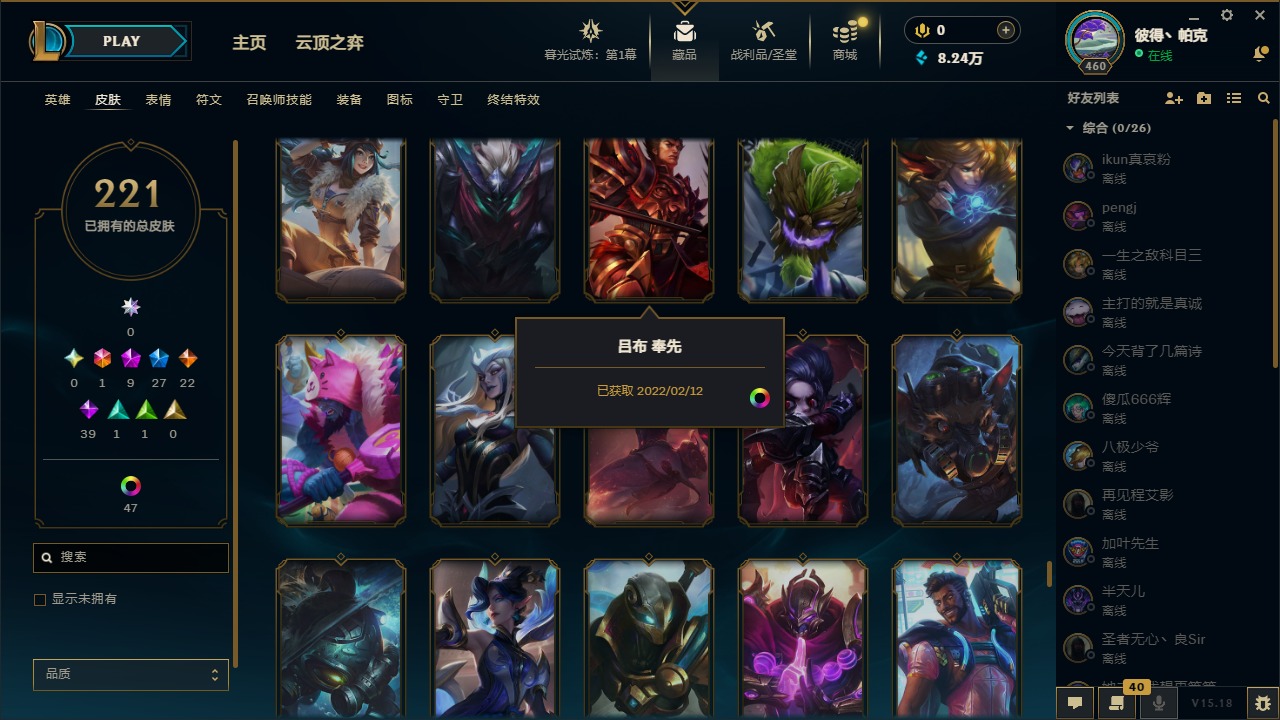[12003082]1终极 9神话 27限定 22传说 39史诗 221皮肤 62炫彩 171英雄 可二次 可修改实名 优质装备:至臻 神龙尊者均衡之龙 沃利贝尔,源代码 乐芙兰,防爆天使 凯尔,暗影 沃里克,都铎王朝 图奇,红桃杰克 崔斯特,未来战士,至臻 花仙使者 卡特琳娜,弹幕天使 卡莎 炽天使·勇敢,无畏骑士 瑟庄妮 赤子初心,至臻 天龙之子 伊泽瑞尔,可爱可爱粉红红 布里茨,净雪之月 莫甘娜 冬虹,殿堂传奇 乐芙兰 登神,魔女 阿狸 饕餮,殿堂传奇 乐芙兰,水晶掠夺者 卡兹克,魔女 阿卡丽 虚荣 至臻:殿堂传奇 乐芙兰,水晶掠夺者 卡兹克 海克斯:海克斯 雷克顿,海克斯 克格莫 情人节限定:甜心宝贝 安妮 赛季限定皮:胜利凤凰 艾尼维亚,胜利剑圣 易,胜利女神 娑娜,胜利巨口 克格莫,胜利之王 泰达米尔 冠军限定系列:S3 SKT T1 劫,S3 SKT T1 婕拉,S5 SKT T1 阿利斯塔,S5 SKT T1 瑞兹,S6 SKT T1 球女,S8 IG 卡莎,S9 FPX 普朗克,S11 EDG 佛耶戈 冰雪节限定:魄罗骑士 瑟庄妮,圣诞精灵 崔丝塔娜,邪恶圣诞老人 维迦,雪默丁格,雪装 奈德丽 泳池派对:泳池派对 吉格斯,泳池派对 菲奥娜 年限:点心宝贝 阿木木,天龙之子 斯莫德,猴年 莫甘娜 周年:10周年 安妮
