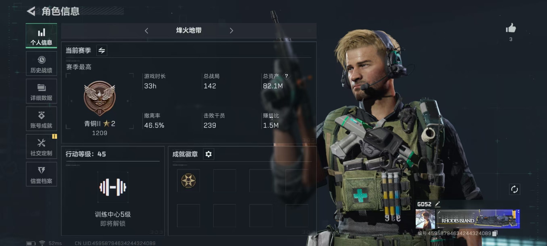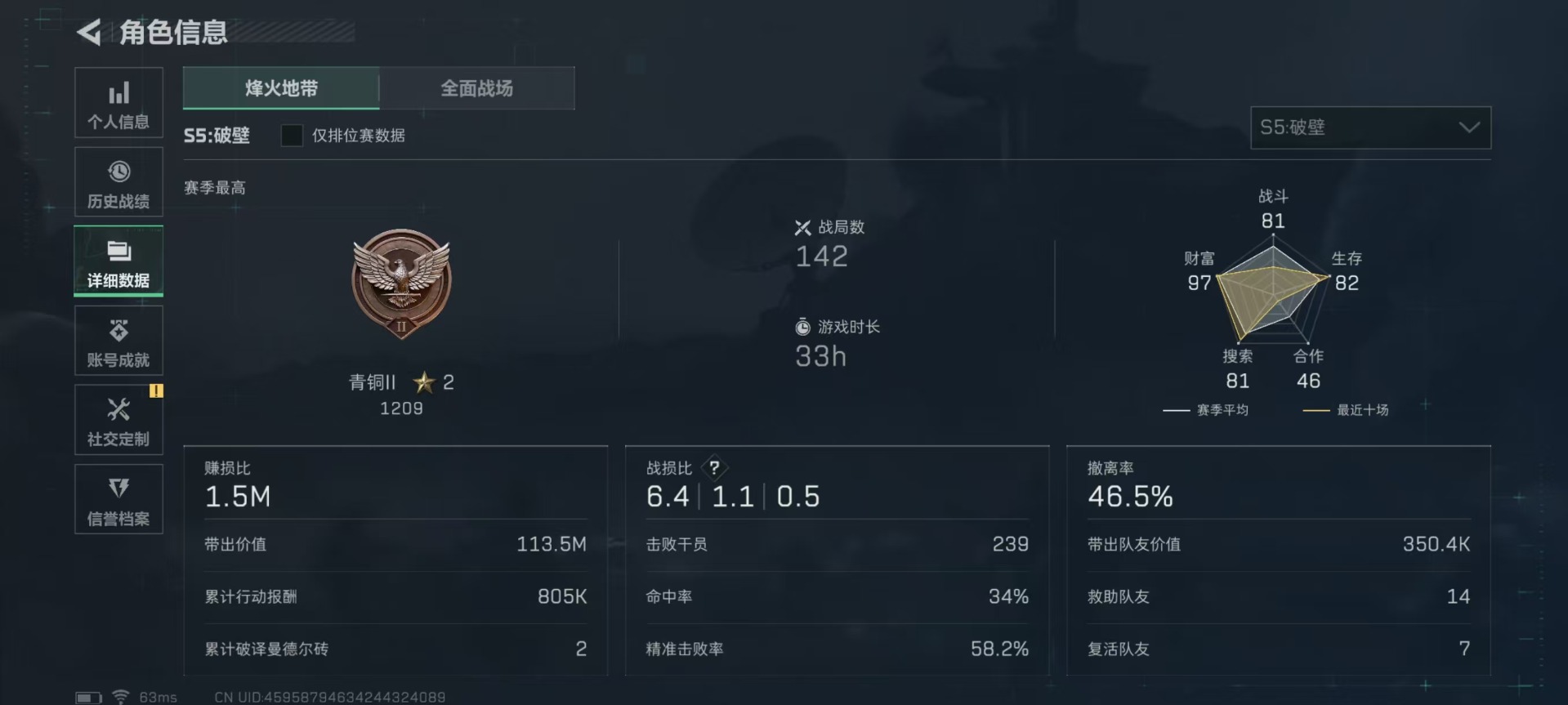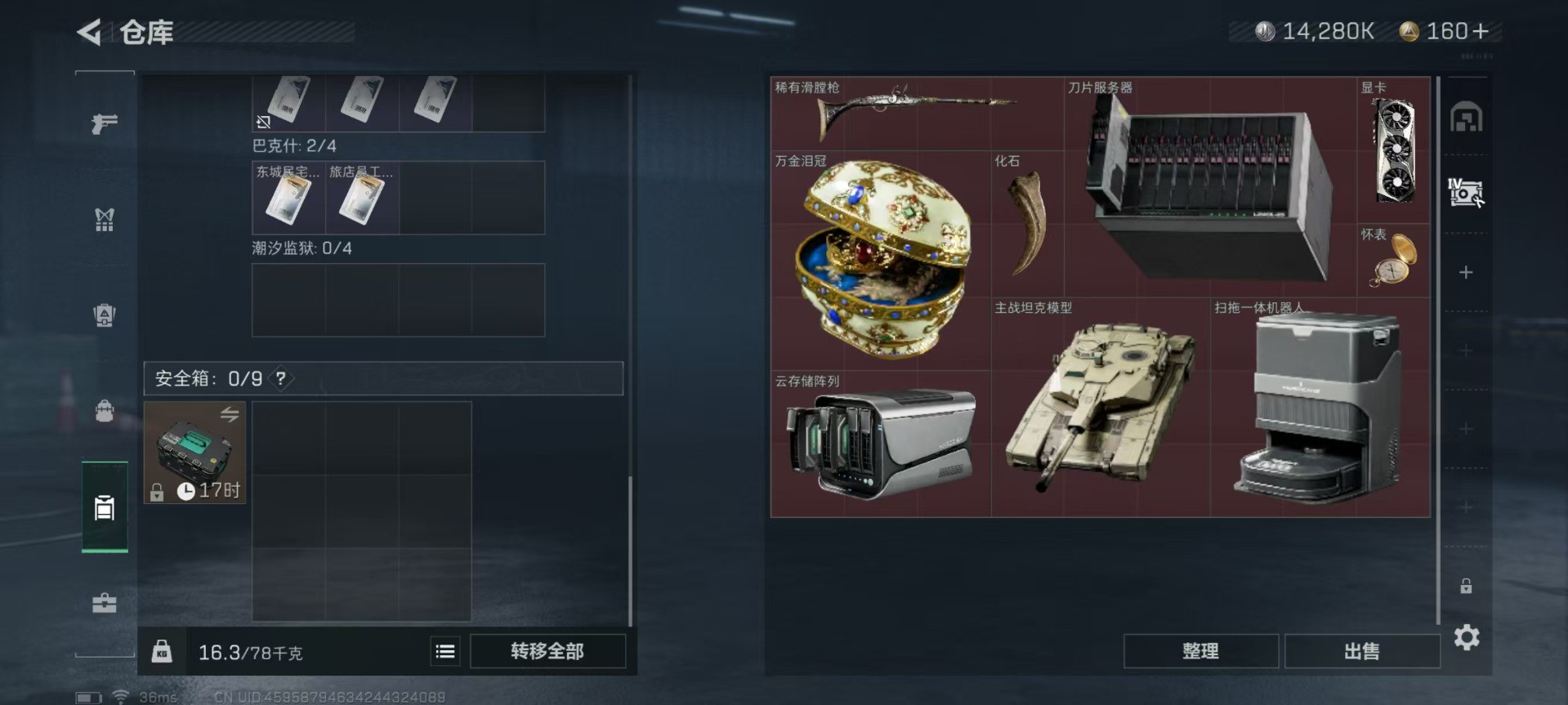 - [11235300]总资产:84.7 可二次 可修改实名 烽火地带段位:白银 全面战场段位:无段位 哈夫币:51.088 史诗武器皮肤:SV-98狙击步枪-林中猎手,SV-98狙击步枪-囚徒,SCAR-H战斗步枪-囚徒