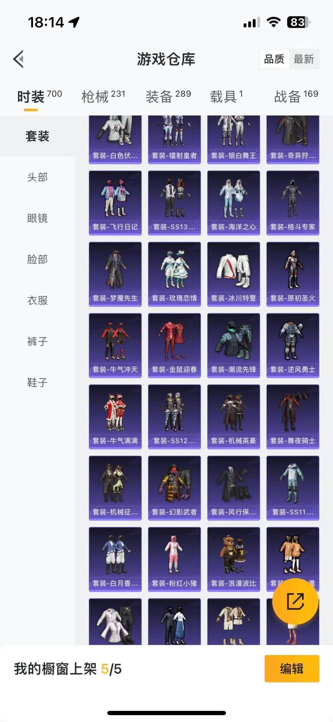 - [11553693]14粉装 4特效枪 1载具 6印记 可二次 可修改实名 身法装备:暗影哥特(红眼罩) 优质装备:玛莎拉蒂Quattroporte(夜幕蓝),天禅智恒,SCAR-L青春物语,M416暖熊萌萌,M249彩虹甜喵(M249-彩虹甜喵),Kar98K-巳巳如意 热门装扮:精灵娃娃,酣梦娃娃,天之羽翼,焦糖拿铁,橘柚倾心,霞光圣骑,寒光使者,暖熊萌萌,复仇流浪者,垂柳戏鸭,太空嘟嘟,彩虹甜喵,冰川红玫,S1赛事上衣,兔兔白日梦,鹰眼刺客 载具:僚机-萌兔起飞 六级特效枪:六级M416-暖熊萌萌 五级特效枪:五级SCAR-L-青春物语 三级特效枪:三级M249-彩虹甜喵 一级特效枪:一级Kar98K-巳巳如意 紫色装扮:田园牧歌,轻风白浪,SS22特训,酸甜橘柚,樱桃黑巧,俏皮奶喵,暖心橘喵,灵幻魔术师,娇憨猪猪,萌趣咩咩,暖心熊熊,SS21特训,苍岚星,SS30特训套装,军械专家,SS5特训,人气偶像,冰川特警,冷焰舞者,北国孤狼,SS20特训,猎梦纪元,冰爽风暴,爆裂葡萄,虚音幻奏,英勇保护者,飞驰魅影,音速流光,SS19特训,粉团憨憨,软羊咩咩,甜心亚梦,瑞龙福将,团圆交子,醒狮腾龙,SS17特训,浓情摩卡,冰暴轰轰,绿翡凌光,月蓝流光,异彩先驱,缤纷焰火,SS18特训,长空猛禽,都市魅力,酒红色名流,雪山精英,霓虹极客,霓虹街区,青年教官,缤纷果语,蓝彩潮人,蓝色守护者,蓝色运动,虎虎生威吉莉,街头潮人,跃动心情,龙的传人,飞行日记,骑行爱好者,魅力单车,鹤鸣,麻辣教官,黄色伏地魔,黄色名流,黄色运动,黑色伏地魔,龙魂突击队,绮丽涂鸦,极速红龙,格斗先锋,橘黑制服,海岛探路者,深蓝色名流,湖蓝色名流,幻世战舞者,圣诞大吉,夏日音浪,完美偶像,帅气教官,幻影武者,怒火燎原,战地督导,战地菁英,探宝勇士,滨海假日,甜蜜熊情侣,疯狂小兔子,白色伏地魔,破蛋小黄鸡,福星高照,空岛之星,空投萌叽,竞技勇士朋克,竞技达人朋克,红色运动,甜蜜告白,猛禽,滨海厨神,灰色格斗者,炫蓝之夏,牛气冲天,牛气满满,特战装甲,SS29特训,SS28特训,玉兔迎春,暗影哥特(红眼罩),竞技名士,街头风暴,智谋强哥,深海梦境,SS25特训,SS27特训,Alan Walker,粉红小猪,浪漫天命,SS26特训,SS6特训,SS7特训,SS8特训,玲珑飞花,SS12特训,抹茶蜜豆,本愿之火,纯白誓言