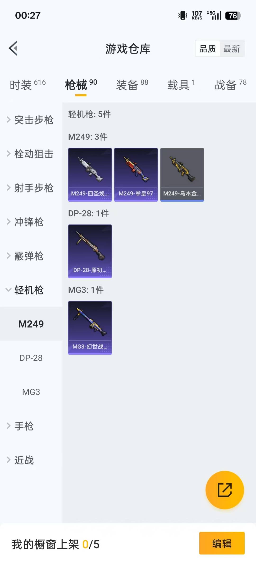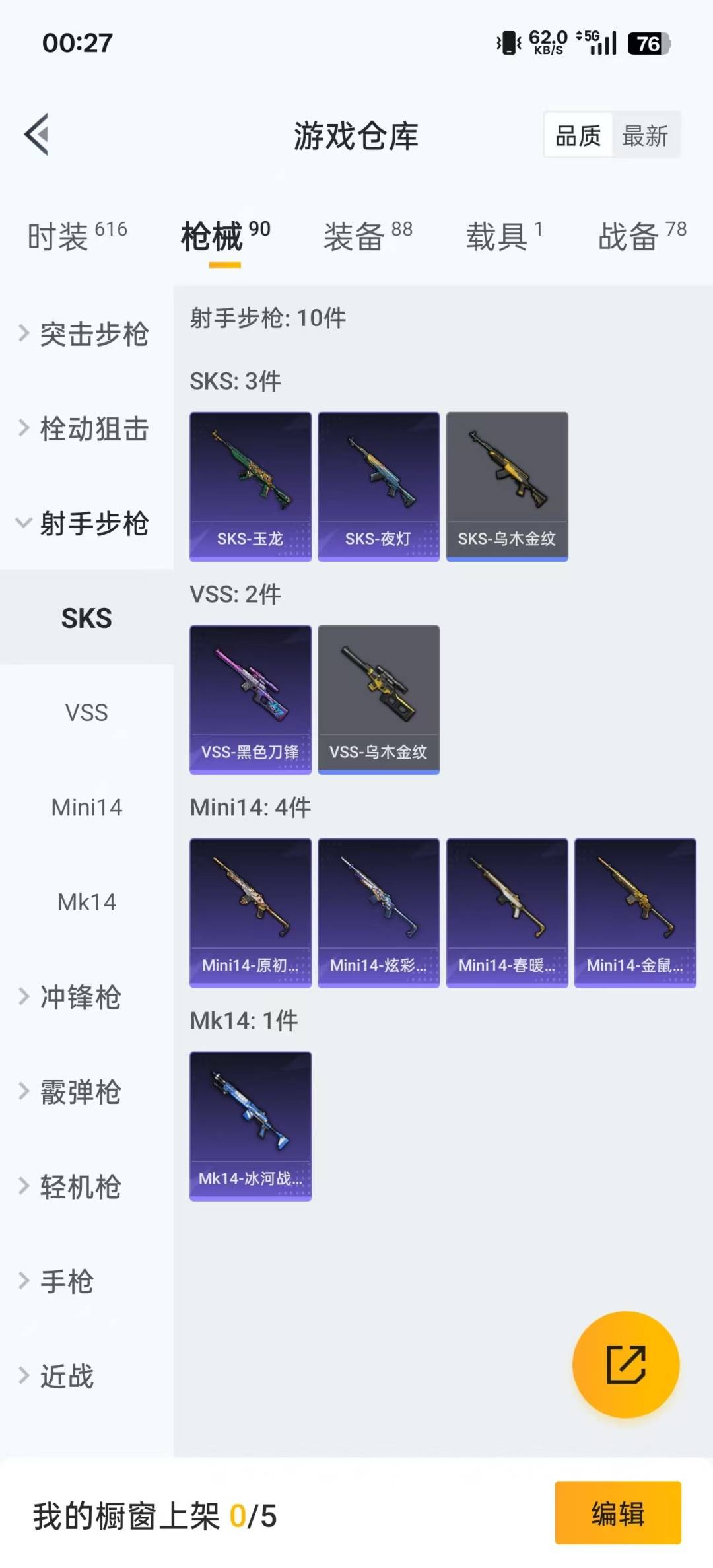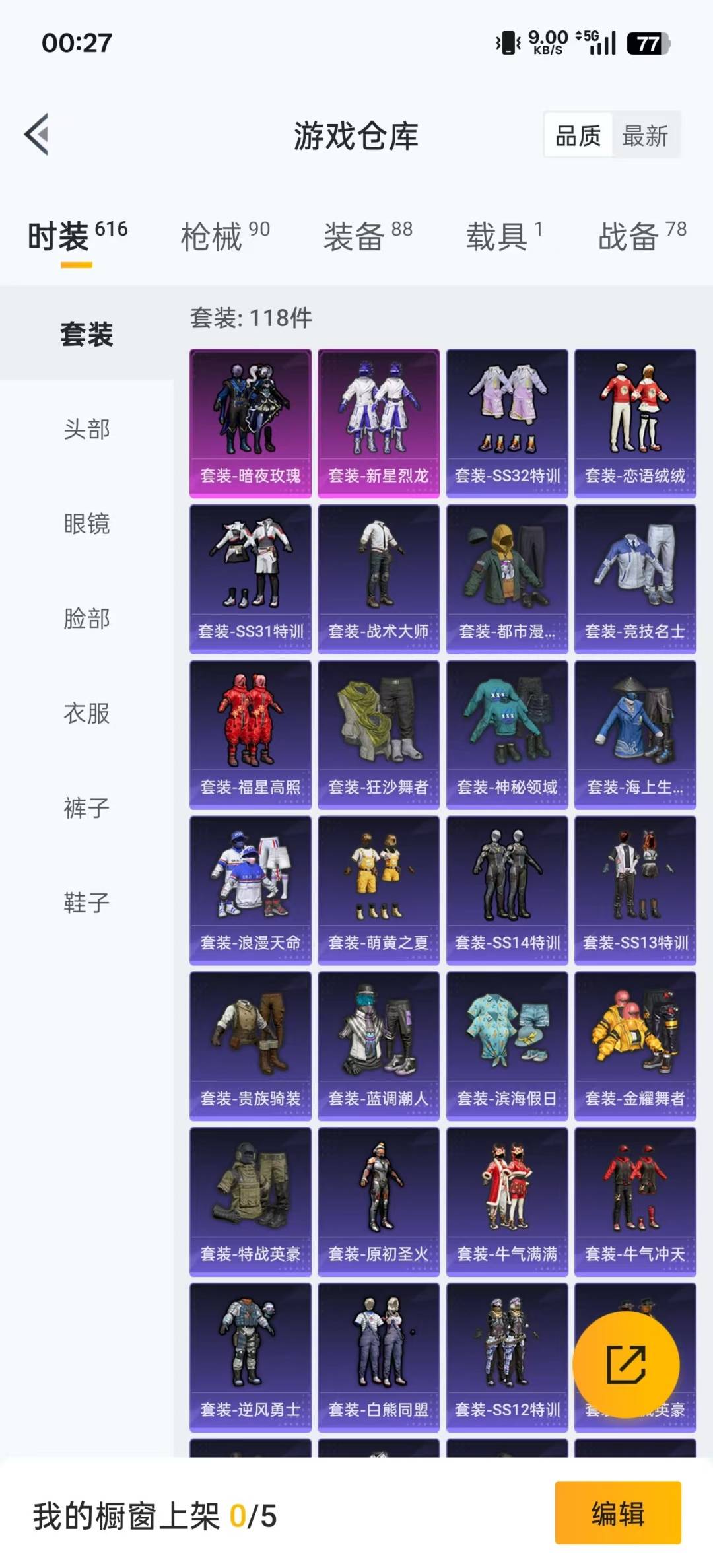 - [11646239]3粉装 5特效枪 4印记 可二次 可修改实名 优质装备:GROZA-镜光银凌,AUG-暖羊咩咩,星穹咏叹调,MK14-甜梦熊击,羊梦糖心,Kar98K-巳巳如意 热门装扮:第五大道,星兔领航员 稀有枪皮:DP-28-豹影疾电 五级特效枪:五级GROZA-镜光银凌,五级Kar98K-巳巳如意,五级DP-28-豹影疾电,五级MK14-甜梦熊击,五级AUG-暖羊咩咩 紫色装扮:田园牧歌,轻风白浪,SS22特训,莱茵河畔,SS23特训,幻彩翩翩,灵蜜圈圈,妙红点点,娇憨猪猪,暖心橘喵,萌趣咩咩,SS21特训,绚烂繁星,SS31特训套装,冰川特警,云朵鹅,雪绒豹,SS33特训套装,SS20特训,飞驰魅影,音速流光,SS19特训,军刀雅典娜,豚鼠丹丹,甜心亚梦,虚音幻奏,水晶王族,酒红色名流,野性战心,长空猛禽,蓝色运动,飞行日记,魅力单车,麻辣教官,黄色伏地魔,黄色名流,黄色运动,黑色伏地魔,龟仙人,冰河战士,龙魂突击队,蝶变,极地朋克,柠萌假日,沙漠兵团,涂山之恋,清新柠檬,夏日音浪,完美偶像,帅气教官,幻世战舞者,探宝勇士,湖蓝色名流,绮丽涂鸦,白色伏地魔,空岛之星,红色运动,王牌教练,牛气冲天,炫蓝之夏,牛气满满,猛禽,特殊使命,特训学院,猎鹰,雏菊兔兔,萝兰蝴蝶,SS29特训,SS28特训,铁血战翼,鱼渊荷华,玉兔迎春,燕燕于飞,巳巳如意,风玲,都市丽猫,林月如,竞技名士,神气柴柴,懵萌河马,SS24特训(SS24特训套装),菲菲,超人强,焰鹰斗篷,幻羽潜行,SS27特训,SS26特训,春光漫游,智谋强哥,星影赞美诗,小鸟芋圆,蓝冰羽,紫幽梦,SS32特训服(SS32特训套装),萌黄之夏,恋语绒绒,金耀舞者,光之冒险 优质战备:星途旅人降落伞,未来领航者降落伞,庄周梦蝶降落伞,炙焰牛王降落伞,恐龙拽拽降落伞,橘柚倾心降落伞,夜幕颂歌飞行器,幻星舰长飞行器,智趣喵喵飞行器,临安公主降落伞,桃粉嫣然降落伞,筑梦精灵降落伞,环太平洋降落伞,翩跹演武降落伞,暗夜鎏金降落伞,纯梦嫁纱降落伞,第五大道降落伞