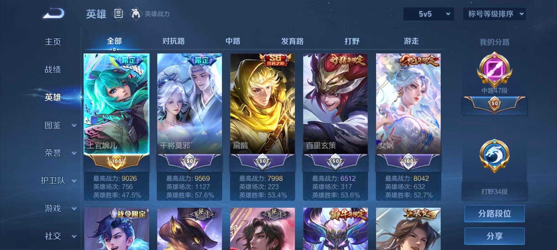 - [12142442]V5 3传说 121英雄 148皮肤 可修改实名 优质装备:游龙清影(小青龙) 传说皮:幻光神枪 珍宝阁皮:蔷薇恋人 限定皮:鸣野蒿,山海·碧波行(瑶年限),至美·乘鲤谣,五谷丰年,梁祝 史诗皮:涂山红红,乘龙·聚宝船(安琪拉年限),苍穹之光,特工魅影,江河有灵,高渐离燃音魔法,晚萤,末日机甲-吕布,猫狗日记-大乔,节奏热浪,女仆咖啡,摇滚巨星,水果甜心,心灵骇客,功夫厨神,鬼剑武藏,舞动绿茵,诗语江南,缤纷独角兽,乘风破浪,水晶猎龙者,曙光守护者,金属风暴,圣诞恋歌,鹰眼统帅,魅力维加斯,无心,未来纪元-赵云