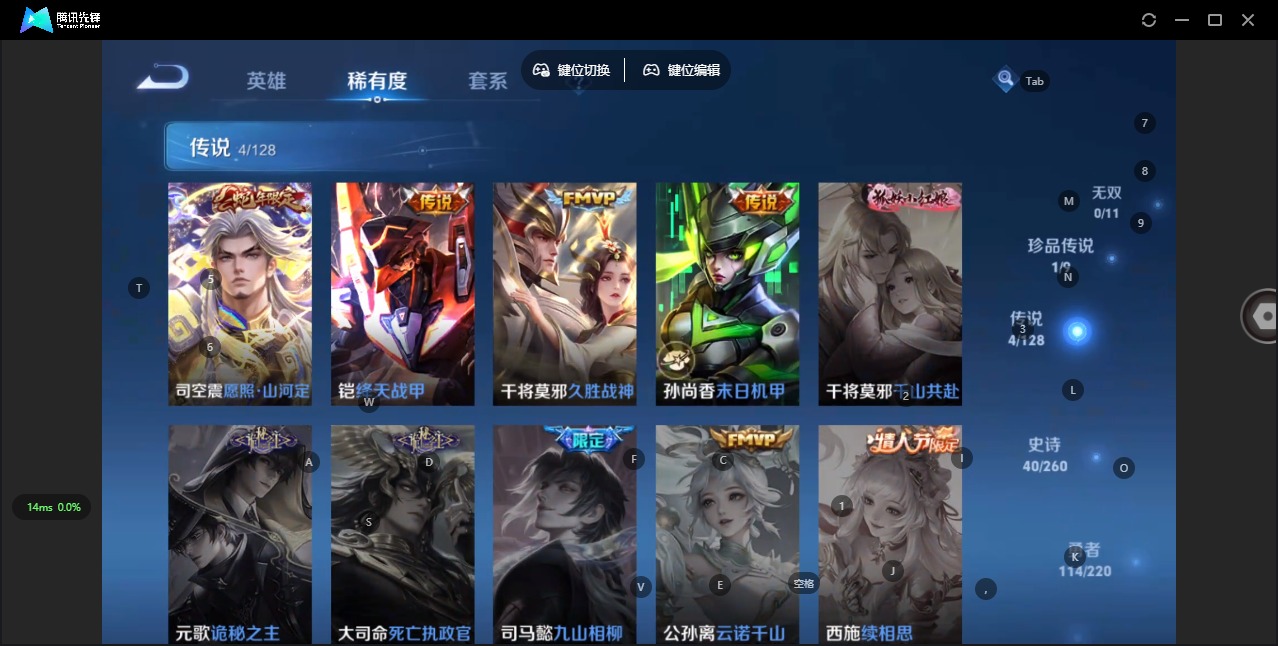 - PX_2108147-Q/最强王者/80皮肤/109英雄/0典藏/0珍品无双/0无双/0珍品传说/6传说/26史诗/5稀有英雄 【6 传说皮肤】逐花归海 澜,云鹰飞将 曜,落雪白狼 亚连,一念神魔 李信,战鼓燎原 典韦,鸣野蒿 桑启, 【26 史诗皮肤】天秀·启明 杨戬,鬼剑武藏 宫本武藏,星夜王子 白起,百相守梦 关羽,魅力维加斯 妲己,偶像歌手 王昭君,赏金猎手 澜,鹰眼统帅 狄仁杰,魔术师
