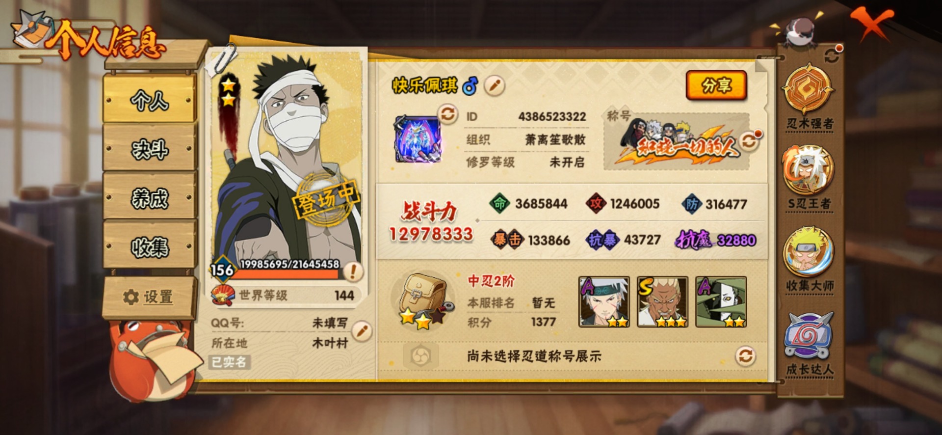 - 火影忍者手游/QQ/安卓QQ1-100区/1区宇智波佐助