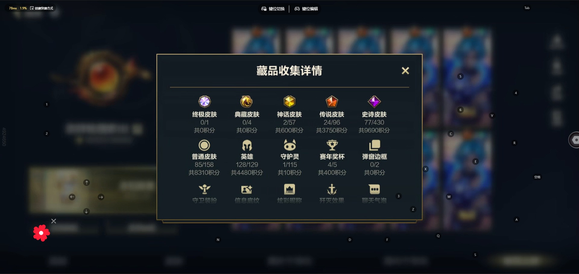- [11985959]V7 1典藏 5传说 123英雄 245皮肤 可修改实名 优质装备:神鉴启示录,地狱之眼,胖达荣荣,时之恋人-刘备(电焊工) 珍宝阁皮:妄想食味,蔷薇恋人 限定皮:愿照·九州拓(澜年限),逐霄战戟,鸣野蒿,至尊宝,梁祝 史诗皮:器灵·浮梦炉,化蝶舞,星界战将,龙之律动,茶境仙,破空之剑,芈月浮光幕影,蔬乡物语(鲁班七号),特工魅影,千年之狐,江河有灵,匿光侦查者,百解令(蒙犽),高渐离燃音魔法,冰冠公主,青蛇,电玩·爆裂旋风,暗夜猫娘,末日机甲-吕布,乱世虎臣,女仆咖啡,摇滚巨星,水果甜心,星夜王子,心灵骇客,德古拉伯爵,暗隐猎兽者,鬼剑武藏,舞动绿茵,纤云弄巧,拒霜思,月团寄思,水晶猎龙者,曙光守护者,金属风暴,鹰眼统帅,魅力维加斯,未来纪元-赵云