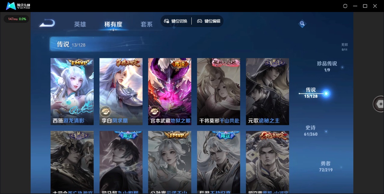 - [11518508]V7 9传说 124英雄 164皮肤 可修改实名 优质装备:猫影幻舞,久胜战神,末日机甲-孙尚香(绿蚂蚱),仲夏夜之梦(大飞蛾),零号·赤焰,乞巧织情,超时空战士-狄仁杰,百相守梦(张飞) 限定皮:至尊宝,凤求凰(白切鸡),凤凰于飞,飞衡(韩信年限),梁祝,李小龙,逐梦之影 史诗皮:百相守梦-黄忠,紫霞仙子,白龙吟,黄金分割率,千年之狐,百相守梦(刘备),百相守梦(关羽),偶像歌手,龙骑士(小龙虾),魅语,节奏热浪,女仆咖啡,水果甜心,天才门将,心灵骇客,鬼剑武藏,诗语江南,水晶猎龙者,金属风暴,圣诞狂欢,圣诞恋歌,鹰眼统帅,暗夜贵公子,魅力维加斯,无心