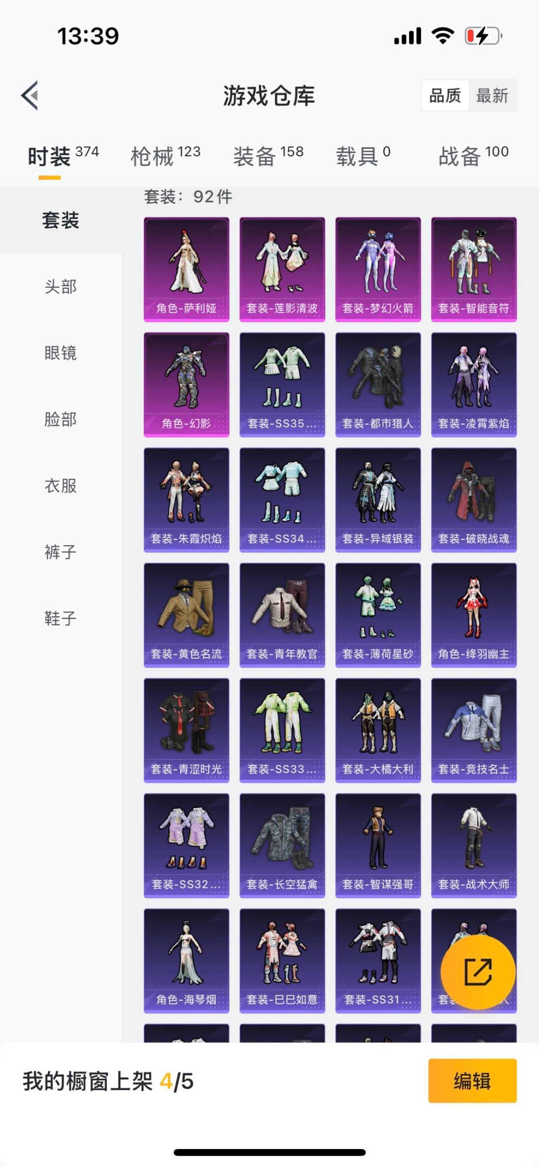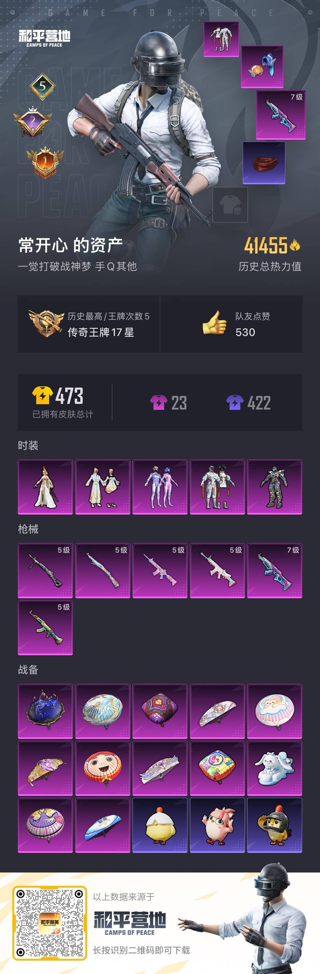 - [12285332]11粉装 5特效枪 1载具 13印记 可二次 可修改实名 身法装备:暗影哥特(红眼罩) 优质装备:永恒黄蜂,缤纷油彩(猪妹猪脸妹),M24莲影清波,PKM江南烟雨,七级PKM-江南烟雨,七级M24-莲影清波,AUG-暖羊咩咩,彩虹独角兽,智耀战神,Kar98K-巳巳如意 热门装扮:彩虹甜喵,天幕蝎影,无畏白羊,双面双生,憨憨奶龙,小叽联名款,严莉莉,小蓝,潮萌小黄鸭 稀有枪皮:DP-28-豹影疾电 五级特效枪:五级Kar98K-巳巳如意,五级DP-28-豹影疾电,五级AUG-暖羊咩咩 紫色装扮:SS30特训套装,SS31特训套装,SS33特训套装,田园牧歌,轻风白浪,SS22特训,夏日音浪,完美偶像,帅气教官,幻世战舞者,冰川特警,娇憨猪猪,迅捷之星,魔力冰咖,SS21特训,SS20特训,萌趣咩咩,异彩先驱,SS18特训,飞驰魅影,音速流光,SS19特训,龙的传人,飞行日记,魅力单车,麻辣教官,黄色伏地魔,黄色运动,黑色伏地魔,龟仙人,冰河战士,长空猛禽,雪鹰学院,霓虹极客,霓虹街区,蜜露汐语,探宝勇士,炫蓝之夏,牛气冲天,牛气满满,涂山之恋,活力之心,绮丽涂鸦,缤纷果语,红色运动,荣耀,荧惑魅影,蓝色运动,狂沙舞者,白色伏地魔,甜蜜熊情侣,破蛋小黄鸡,空岛之星,SS29特训,赵灵儿,萝兰蝴蝶,SS28特训,迎夏光舞,听雨铃兰,湖畔霞光,纯真浪花,玉兔迎春,燕燕于飞,巳巳如意,航行童话,智谋强哥,鱼渊荷华,青团波波,糖糖葫芦,棉花软糖,竞技名士,街头风暴,许七安,怀庆长公主,暗影哥特(红眼罩),俏兔智灵,热情海星,惊鸿侠骨,SS24特训(SS24特训套装),萤火魅影(套装-荧惑魅影),SS25特训,锦衣飞扬,焰鹰斗篷,幻羽潜行,SS27特训,星际旅行,舰行太空,浪漫天命,晨曦薄雾,SS26特训,春光漫游,快闪甜心,大橘大利,星渊小夜曲,星影赞美诗,青玉碎影,SS32特训服(SS32特训套装),紫幽梦,蜜桃派对,蓝冰羽,恋语绒绒,粉恋花,光之冒险 优质战备:精灵梦叶罗丽降落伞,巴啦啦小魔仙降落伞,萌物绒绒飞行器,庄周梦蝶降落伞,恐龙拽拽降落伞,小叽联名款降落伞,小叽联名款飞行器,幻彩电音降落伞,冷漠罗丽降落伞,临安公主降落伞,彩虹独角兽飞行器,智耀战神降落伞,彩虹独角兽降落伞,樱桃泡泡降落伞,月下星之子飞行器,橘柚倾心降落伞,旋转彩虹降落伞,歌者泠鸢降落伞,拂晓神