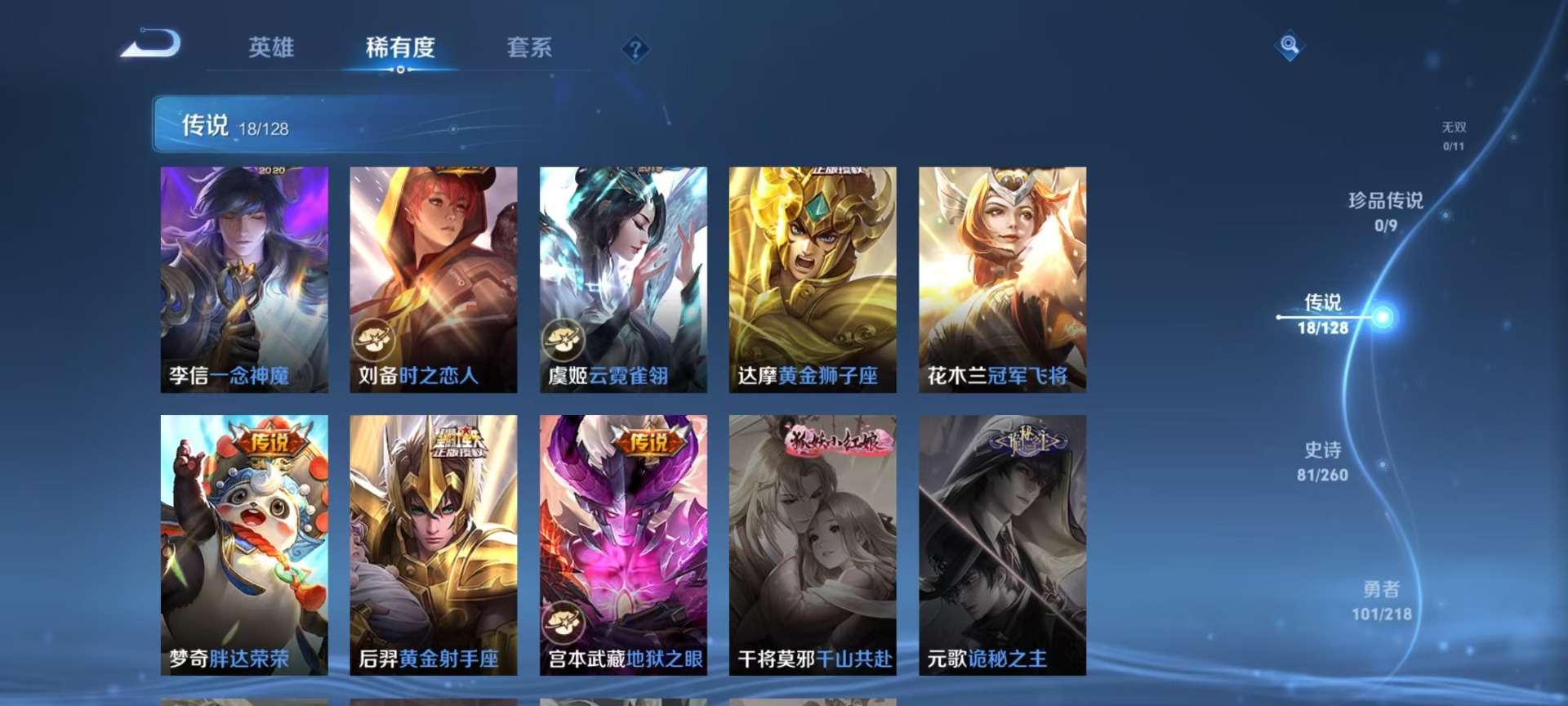 [12025199]V9 1典藏 18传说 124英雄 280皮肤 可修改实名 优质装备:银白咏叹调(倪克斯侍卫),黄金狮子座,黄金射手座,冠军飞将,炽阳神光,一念神魔,云霓雀翎,地狱之眼,音你心动-周瑜,胖达荣荣,乞巧织情,时之恋人-刘备(电焊工),淬星耀世,山海·炽霜斩(李信年限) 珍宝阁皮:蔷薇恋人 限定皮:愿照·九州拓(澜年限),至尊宝,傲雪梅枪,无限倾心-项羽,齐天大圣,李小龙,朱雀志(守约年限),默契交锋-兰陵王,山海·玄木吟(马可年限) 史诗皮:器灵·浮梦炉,化蝶舞,蔬乡物语(鲁班七号),乘龙·聚宝船(安琪拉年限),百相守梦-黄忠,紫霞仙子,苍穹之光,电玩小子(小书包),白龙吟,黄金分割率,特工魅影,千年之狐,江河有灵,匿光侦查者,魅语,无限星赏官,冰冠公主,青蛇,偶像歌手,白蛇,晚萤,电玩·爆裂旋风,暗夜猫娘,龙骑士(小龙虾),末日机甲-吕布,猫狗日记-孙策,猫狗日记-大乔,时之恋人-孙尚香,乱世虎臣,节奏热浪,修罗,女仆咖啡,摇滚巨星,水果甜心,绅士熊喵,天才门将,星夜王子,心灵骇客,功夫厨神,德古拉伯爵,暗隐猎兽者,幽灵船长,鬼剑武藏,心灵战警,天秀·启明,舞动绿茵,地狱岩魂,诗语江南,繁星吟游(呼啦呼啦),缤纷独角兽,乘风破浪,逐浪之夏,龙鼓争鸣,水晶猎龙者,曙光守护者,热力回旋,箭羽风息,金属风暴,圣诞狂欢,圣诞恋歌,鹰眼统帅,暗夜贵公子,魅力维加斯,赏金猎手,未来纪元-赵云