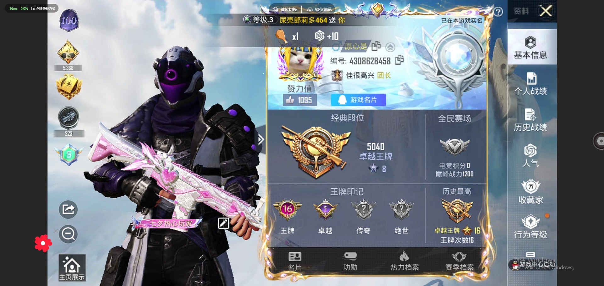 [12025505]9粉装 8特效枪 16印记 可二次 可修改实名 身法装备:舞王派对(派对舞王、小金鞋) 优质装备:舞王派对(派对舞王、小金鞋),M416五爪金龙,奇异狩猎者,幻影战神,深渊皇后,M416风花雪月,七级M416-风花雪月,GROZA-镜光银凌,AUG-暖羊咩咩,智耀战神,AMR-智耀战神,MK14-甜梦熊击,时光之誓,羊梦糖心,Kar98K-巳巳如意 热门装扮:鸾凤武仙,未来歌姬,闲梦青缨,烟云彩露,派对舞王(小金鞋) 稀有枪皮:DP-28-豹影疾电 六级特效枪:六级AMR-智耀战神 五级特效枪:五级GROZA-镜光银凌,五级Kar98K-巳巳如意,五级DP-28-豹影疾电,五级MK14-甜梦熊击,五级AUG-暖羊咩咩 四级特效枪:四级M416-五爪金龙 紫色装扮:SS22特训,SS23特训,娇憨猪猪,暖心橘喵,萌趣咩咩,暖心熊熊,SS21特训,SS31特训套装,SS2特训,SS3特训,SS5特训,人气偶像,冰川特警,冷焰舞者,凛冬战士,北国孤狼,旭日情侣,极速光影,SS30特训套装,云朵鹅,彩虹兔,雪绒豹,SS33特训套装,青涩时光,顶瓜瓜,SS20特训,SS15特训,双棍侠客,时空追击者,暴风机械师,SS16特训,SS13特训,星梦畅游,SS14特训,萌趣颜团子,特种颜团子,SS19特训,英勇保护者,竞技角斗士,吉莉礼服,甜心亚梦,虚音幻奏,瑞龙福将,团圆交子,SS17特训,SS18特训,都市漫游者,都市魅力,酒红色名流,野性战心,野性战魂,金鼠迎春,长空猛禽,雪山征服者,雪山精英,霓虹街区,青年教官,迎春赐吉,风暴特警,缤纷果语,耀眼新星,荧惑魅影,蓝彩潮人,蓝色守护者,蓝色运动,虎虎生威吉莉,街头潮人,超能勇士,跃动心情,风行保卫者,骑行爱好者,魅力单车,鹤鸣,麻辣教官,黄色伏地魔,黄色名流,黄色运动,黎明保卫者,黑色伏地魔,龙的传人,龟仙人,冰河战士,龙魂突击队,蝶变,香桃花海,和平特警,极速红龙,柠萌假日,橘黑制服,沙漠兵团,沙漠雄狮,海岛探路者,涂山之恋,深蓝色名流,暗黑骑手,幻影武者,圣诞大吉,娴静芝兰,夏日音浪,夜莺强袭者,完美偶像,帅气教官,幻世战舞者,怒火燎原,战地督导,战地菁英,探宝勇士,湖蓝色名流,绮丽涂鸦,疯狂小兔子,白熊同盟,白色伏地魔,破晓战魂,破蛋小黄鸡,神秘领域,甜蜜告白,福星高照,空岛之星,突袭者,竞技勇士朋克,竞技达人朋克,红