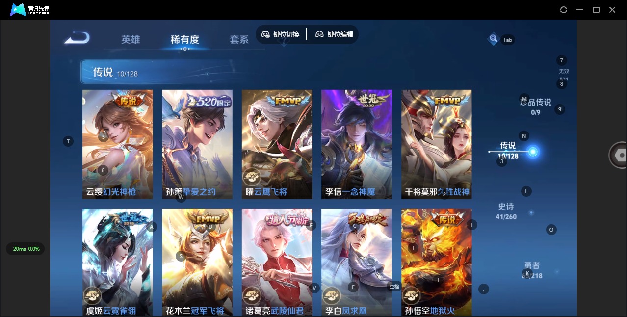 - [12134696]V7 1典藏 4传说 124英雄 218皮肤 可修改实名 优质装备:鸣剑·曳影,零号·赤焰,涂山容容 传说皮:幻光神枪 珍宝阁皮:妄想食味 限定皮:鸣野蒿,至尊宝,白虎志(电光耗子),傲雪梅枪,白晶晶,飞衡(韩信年限),冰锋战神,梁祝,逐梦之星,李小龙,逐梦之影 史诗皮:鸭鸭历险记-刘禅,龙之律动,灵蛊蚀心,百相守梦-黄忠,战舞者,上官婉儿群星魔术团,紫霞仙子,苍穹之光,电玩小子(小书包),黄金分割率,特工魅影,千年之狐,冰冠公主,江河有灵,百解令(蒙犽),偶像歌手,龙骑士(小龙虾),末日机甲-吕布,猫狗日记-孙策,乱世虎臣,节奏热浪,修罗,女仆咖啡,水果甜心,天才门将,星夜王子,心灵骇客,功夫厨神,德古拉伯爵,暗隐猎兽者,幽灵船长,鬼剑武藏,心灵战警,天秀·启明,地狱岩魂,纤云弄巧,繁星吟游(呼啦呼啦),缤纷独角兽,乘风破浪,逐浪之夏,水晶猎龙者,曙光守护者,箭羽风息,原初追逐者,圣诞狂欢,圣诞恋歌,鹰眼统帅,魅力维加斯,未来纪元-赵云