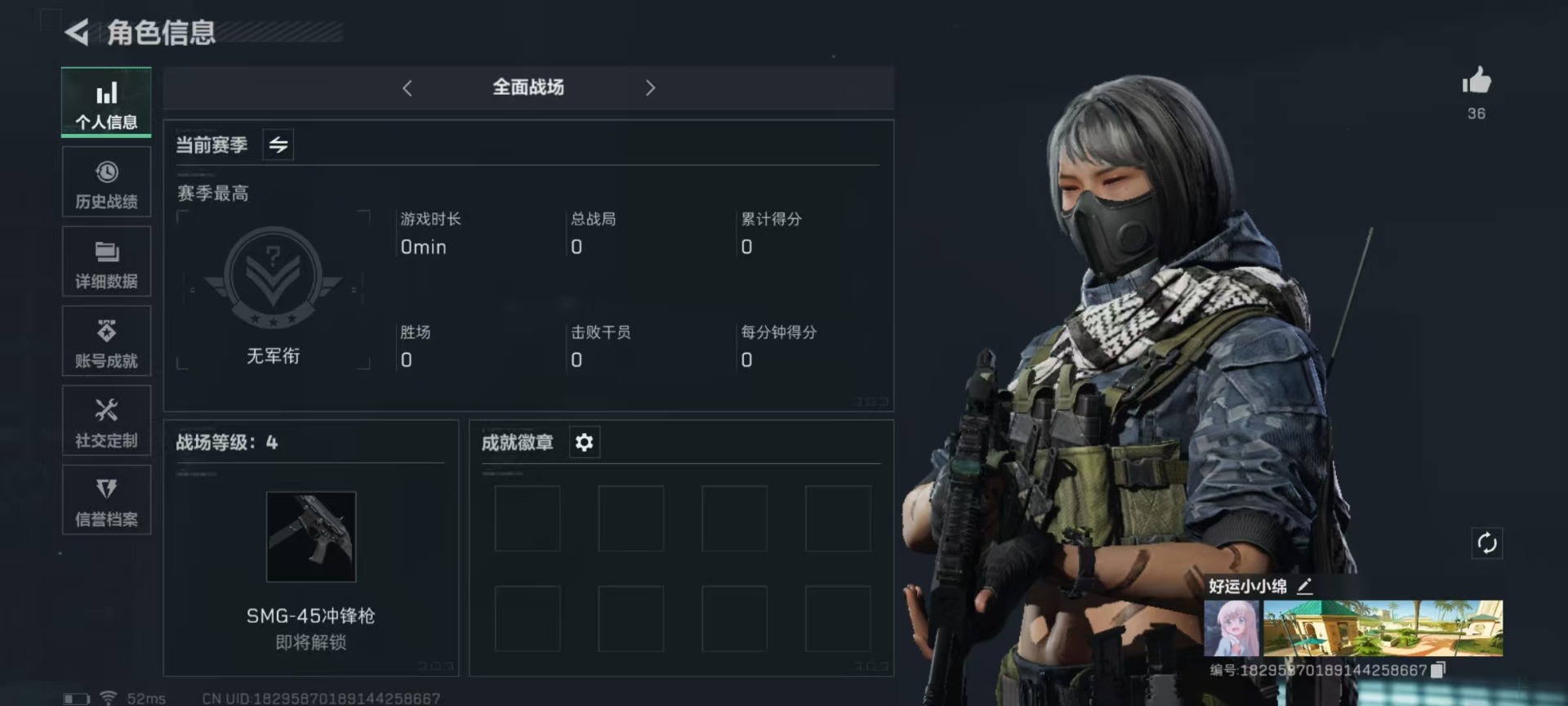 [12025539]总资产:70.1M 哈夫币:2.452K 可二次 可修改实名 烽火地带段位:无段位 全面战场段位:无段位 史诗武器皮肤:AKM突击步枪-林中猎手,M1014霰弹枪-林中猎手