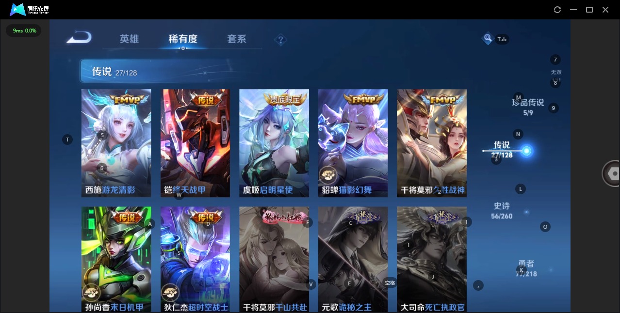 [12025669]V9 2典藏 1无双 5珍品传说 27传说 124英雄 201皮肤 可修改实名 女号 优质装备:拾光映像(瑶典藏),雪境奇遇-甄姬,最初的交响(伽罗典藏),江户川柯南,器灵·落星盏,酷洛米之心,大耳狗之梦,绛天战甲(鸡嘴战神),猫影幻舞,久胜战神,末日机甲-孙尚香(绿蚂蚱),游龙清影(小青龙),超时空战士-狄仁杰,末日机甲-孙策,音你闪耀(rap皮),记忆之芯(机甲兔),追逃游戏(安琪拉),妄想奇谈,霜月吟,牧神诗旅 珍品传说:兔狲·蓬尾 传说皮:云诺千山,续相思,星之鸣奏,祥瑞亨通,幻光神枪 珍宝阁皮:妄想食味 限定皮:愿照·九州拓(澜年限),愿照·福禄聚(蔡文姬年限),愿照·岁时盈(虞姬年限),愿照·山河定(司空震年限),愿照·众生和(妲己年限),愿照·千秋盛(女娲年限),逐霄战戟,映山客,陌上桑,鸣野蒿 史诗皮:鸭鸭历险记-刘禅,器灵·浮梦炉,狼魂孤将,绮世丹青,瑰影绮梦,化蝶舞,龙之律动,雪豹·霜爪,藏狐·褐绒,布丁狗之誓,茶境仙,涂山红红,蔬乡物语(鲁班七号),乘龙·聚宝船(安琪拉年限),百相守梦-百里守约,星界特工,遇见神鹿,紫霞仙子,苍穹之光,特工魅影,魅语,高渐离燃音魔法,青蛇,偶像歌手,白蛇,龙骑士(小龙虾),末日机甲-吕布,节奏热浪,女仆咖啡,摇滚巨星,水果甜心,绅士熊喵,星夜王子,心灵骇客,时之奇旅-安琪拉,鬼剑武藏,心灵战警,乐园奇幻夜,舞动绿茵,地狱岩魂,诗语江南,纤云弄巧,拒霜思,缤纷独角兽,水晶猎龙者,唤灵魅影,鹰眼统帅,魅力维加斯,奇遇舞章