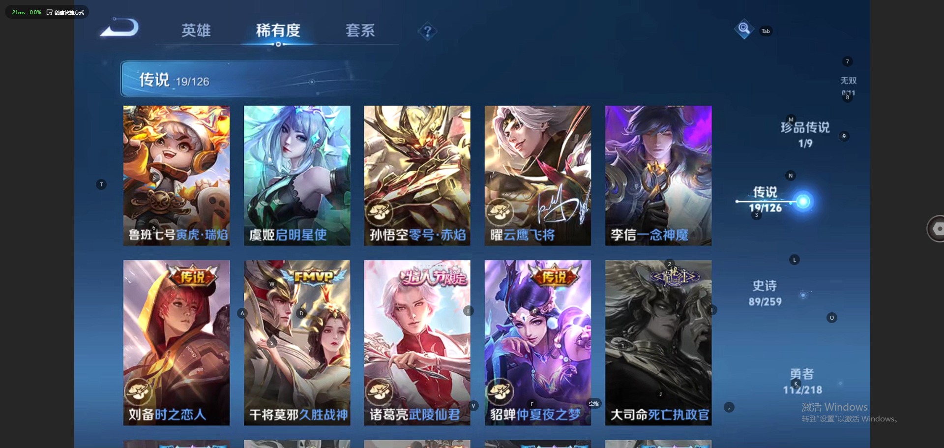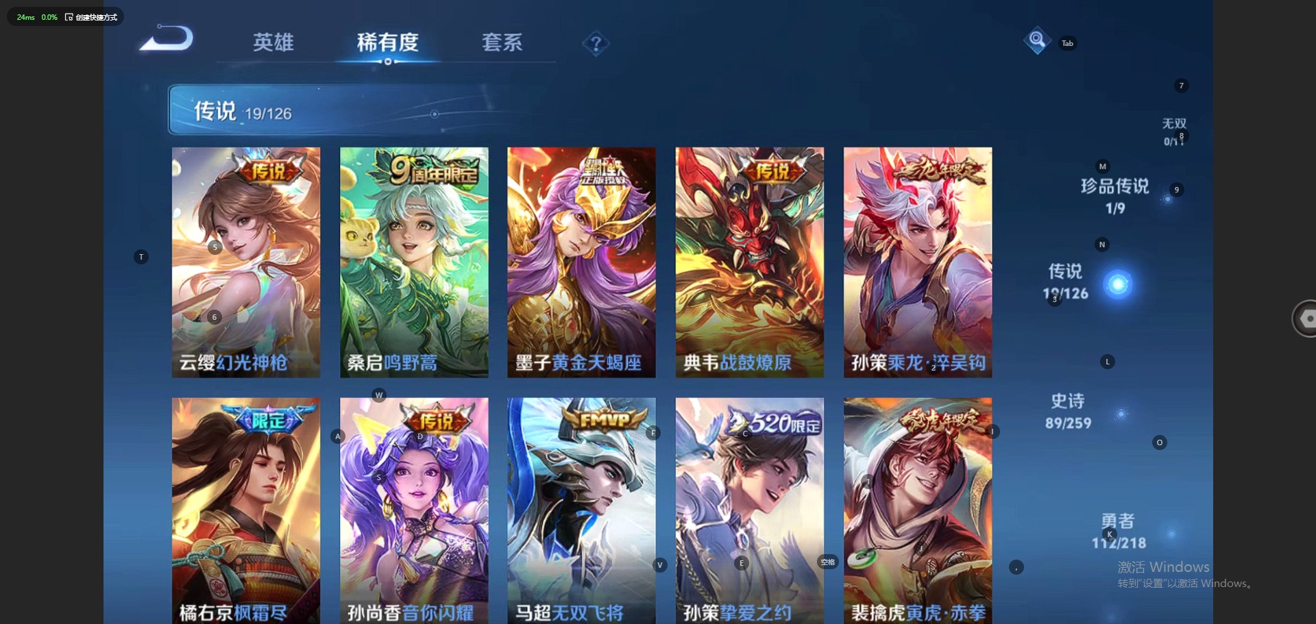 - [12176132]V10 6典藏 20传说 124英雄 268皮肤 典藏英雄武则天 可修改实名 优质装备:星空梦想(太空人),杀手不太冷,鸣剑·曳影,全息碎影(猴子典藏),星域神启(倪克斯贼亮),九霄神辉(木兰典藏),黄金射手座,云鹰飞将(小将军),绛天战甲(鸡嘴战神),一念神魔,云霓雀翎,末日机甲-孙尚香(绿蚂蚱),地狱火,海洋之心,地狱之眼,时之恋人-刘备(电焊工),淬星耀世,超时空战士-狄仁杰,艾琳觅芳踪 珍宝阁皮:女武神 限定皮:鸣野蒿,至尊宝,凤求凰(白切鸡),凤凰于飞,太华(伽罗年限),神威(电光马子),遇见飞天,高山流水,冰锋战神,游园惊梦,梁祝,龙胆,逐梦之星,逐梦之影,逐梦之光,真爱至上,猪悟能,天魔缭乱,神奇女侠,寅虎·御盾(廉颇年限),寅虎·赤拳(老虎年限),启示之音 史诗皮:化蝶舞,遇见神鹿,紫霞仙子,白龙吟,黄金分割率,特工魅影,永昼,冰冠公主,江河有灵,百解令(蒙犽),偶像歌手,龙骑士(小龙虾),暗夜猫娘,末日机甲-吕布,猫狗日记-孙策,时之恋人-孙尚香,乱世虎臣,节奏热浪,女仆咖啡,水果甜心,星夜王子,时之奇旅-安琪拉,德古拉伯爵,暗隐猎兽者,鬼剑武藏,乐园奇幻夜,纤云弄巧,繁星吟游(呼啦呼啦),拒霜思,缤纷独角兽,乘风破浪,逐浪之夏,曙光守护者,箭羽风息,金属风暴,鹰眼统帅,暗夜贵公子,魅力维加斯,奇遇舞章,寅虎·御盾