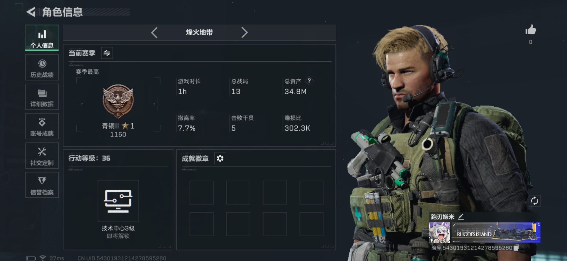 [12025998]总资产:34.8M 1干员外观 12传说枪械 哈夫币:1.852K 可二次 可修改实名 烽火地带段位:无段位 全面战场段位:无段位 传说武器皮肤:AK-12突击步枪-特斯拉线圈,SR-3M紧凑突击步枪-特斯拉线圈,UZI冲锋枪-特斯拉线圈,勇士冲锋枪-能天使-午夜邮差,腾龙突击步枪-捞点薯条,M250通用机枪-骑士之心,93R-捞点薯条,AWM狙击步枪-捞点薯条,M4A1突击步枪-阿米娅,CAR-15突击步枪-阿米娅,复合弓-黑-天际线,M4A1突击步枪-蚀金玫瑰 史诗武器皮肤:SV-98狙击步枪-林中猎手,M249轻机枪-异域战争,P90冲锋枪-紧急戒备 干员外观:红狼-蚀金玫瑰