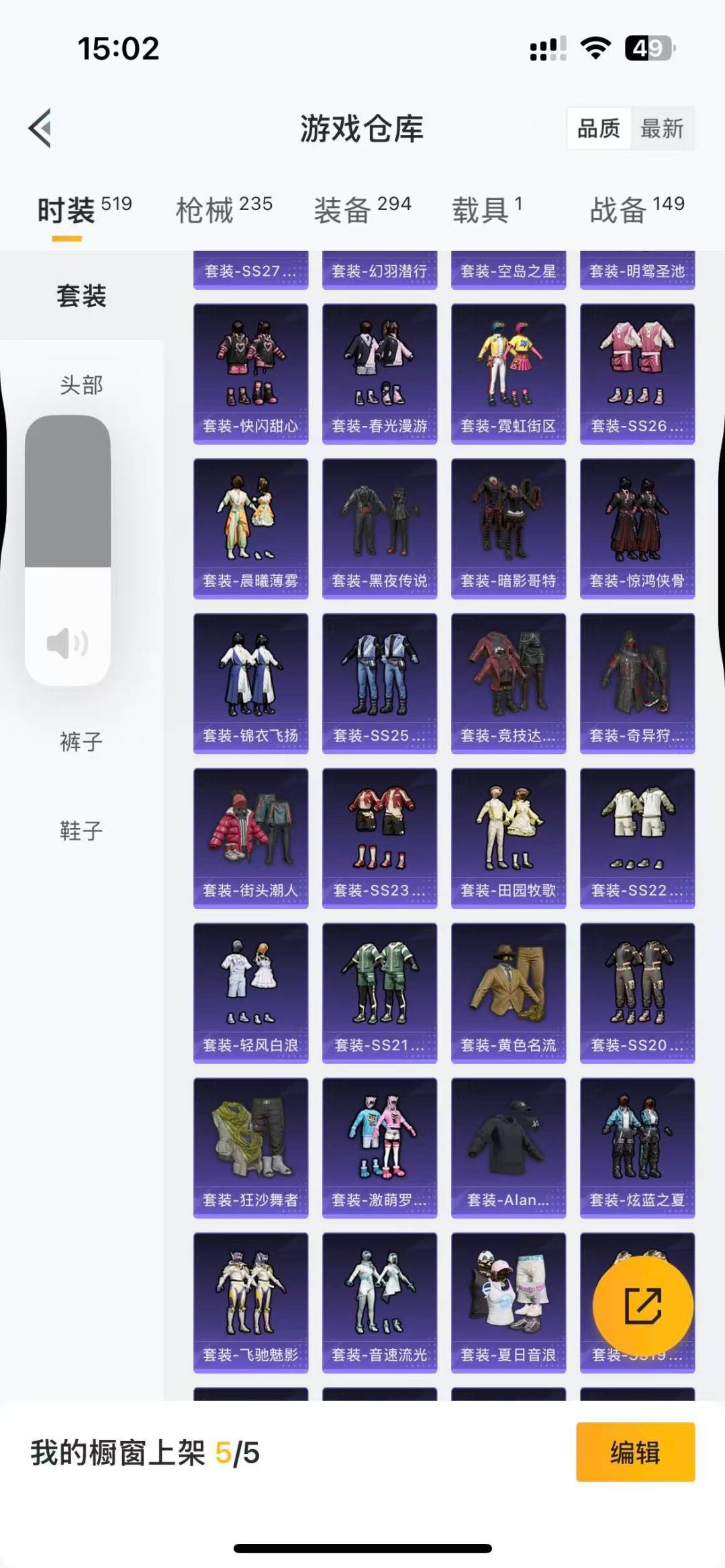 套装-奇异狩猎者,套装-浪漫波比,套装-梦幻火箭,套装-金属狂野,套装-苍蓝魅影,套装-炙焰赤龙,套装-飓风飞鹰,套装-旋转彩虹,角色-呆萌星弥,套装-镜光幻境,角色-圣堂之誓,角色-电波星,角色-星空武士,套装-创世·救赎,套装-未来领航者,角色-千金淑猫,角色-月影灵韵