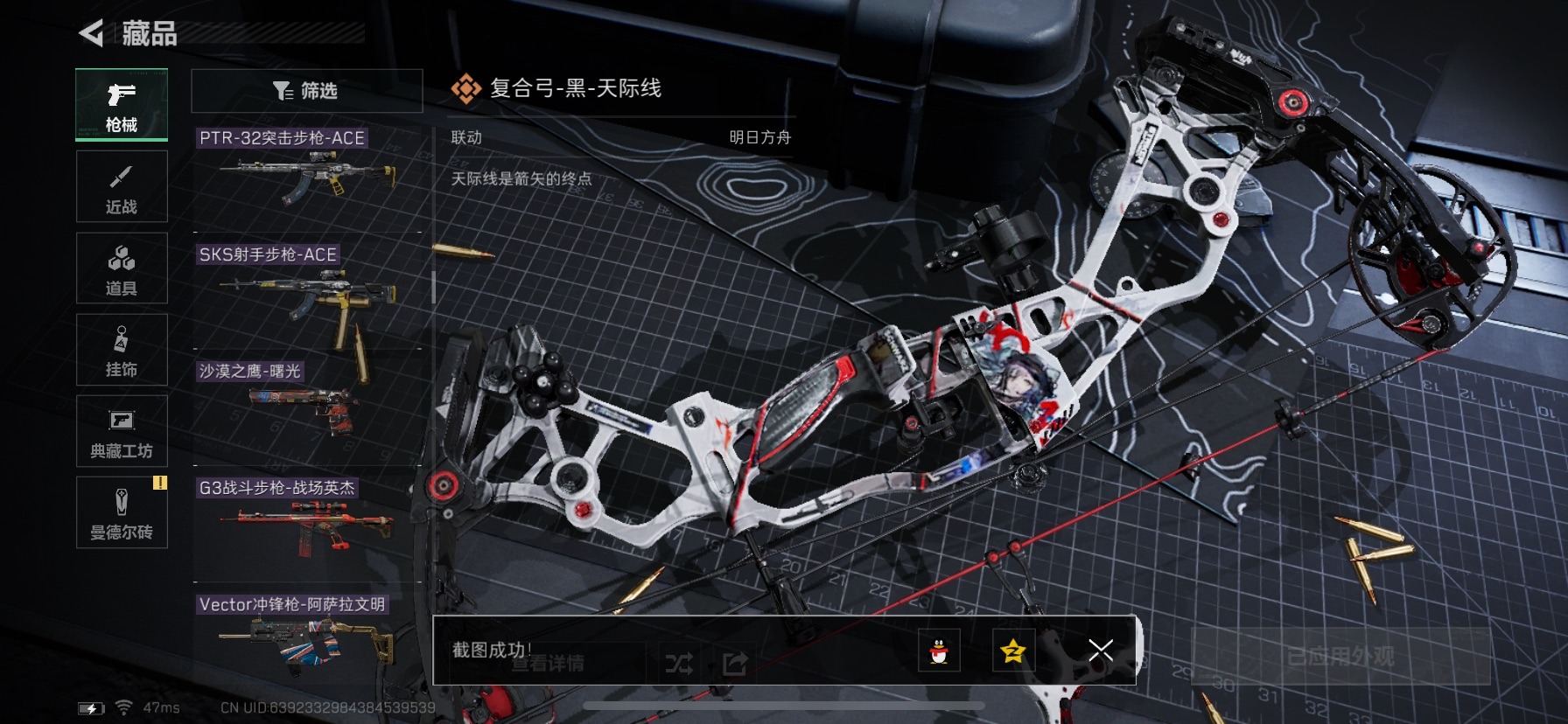 - [11471395]总资产:59.9 1传说枪械 可二次 可修改实名 烽火地带段位:青铜 全面战场段位:列兵 哈夫币:29.120 传说武器皮肤:复合弓-黑-天际线 史诗武器皮肤:SV-98狙击步枪-林中猎手,M700狙击步枪-竞技风
