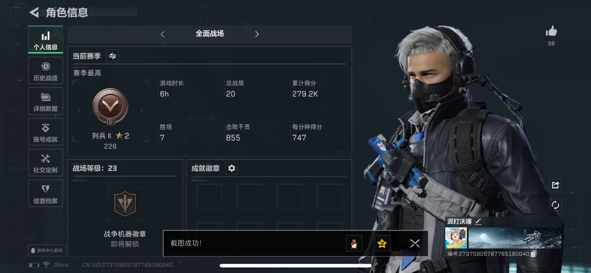 - [12360505]实名: 可修改 时装数: 658 枪械数: 191 战备数: 137 热门装扮: 奇异狩猎者,复仇流浪者,软萌银虎,神秘黑猫,千金淑猫 稀有枪皮: Vector环太平洋,Kar98K-巳巳如意,AUG-暖羊咩咩,MK14-甜梦熊击,DP-28-豹影疾电