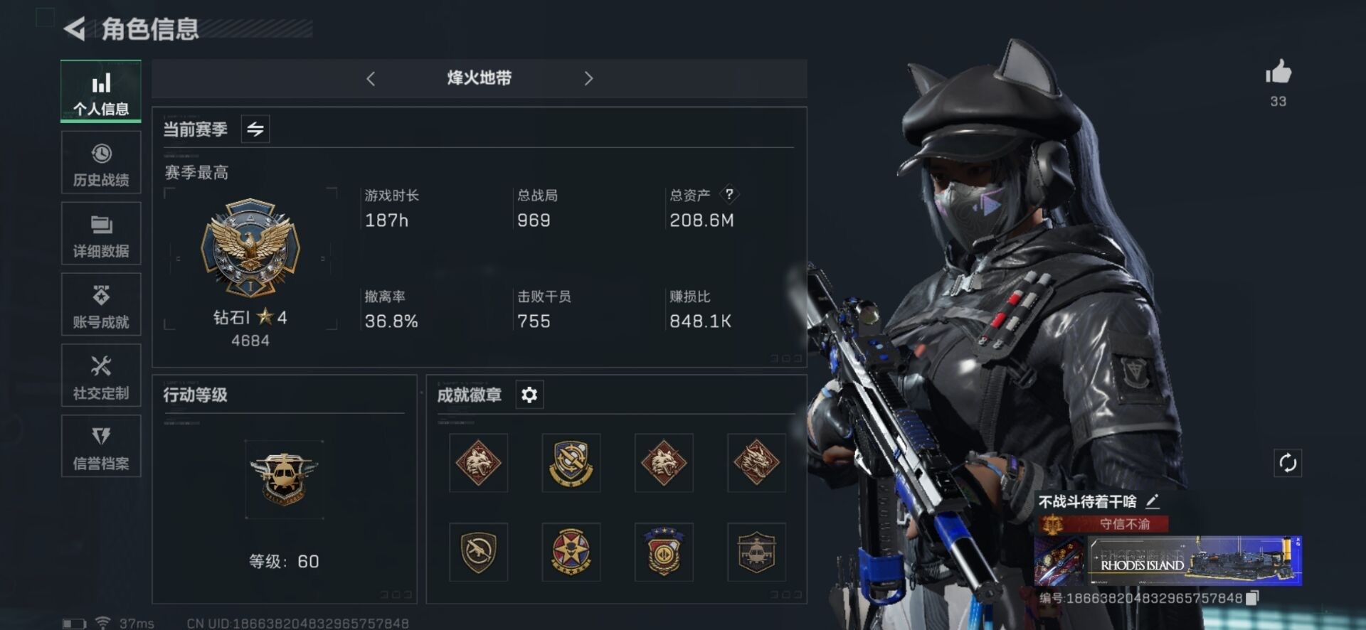 [12026192]总资产:208.6M 1干员外观 1近战传说 13传说枪械 哈夫币:10.611K 高级安全箱(9.17到期) 可二次 可修改实名 优质装备:近战-北极星 烽火地带段位:钻石 全面战场段位:列兵 传说武器皮肤:AK-12突击步枪-夜鹰,SMG45冲锋枪-骑士,M4A1突击步枪-阿米娅,复合弓-黑-天际线,QCQ171冲锋枪-北极星,AK-12突击步枪-特斯拉线圈,SR-3M紧凑突击步枪-特斯拉线圈,UZI冲锋枪-特斯拉线圈,勇士冲锋枪-能天使-午夜邮差,725双管霰弹枪-送葬人-无题密令,K437突击步枪-北极星,M4A1突击步枪-蚀金玫瑰 史诗武器皮肤:AUG突击步枪-蝮蛇,SR-25射手步枪-尖端治疗,PKM通用机枪-荒野求生,AS Val突击步枪-尖端治疗,M700狙击步枪-守夜人,SG552突击步枪-尖端治疗,Ash-12战斗步枪-守夜人,MP5冲锋枪-深海恐惧,SR-3M紧凑突击步枪-荒野求生,SG552突击步枪-深海恐惧,AKM突击步枪-林中猎手,SVD狙击步枪-暗夜猎手,PKM通用机枪-守夜人,SVD狙击步枪-荒野求生,M1014霰弹枪-林中猎手,SV-98狙击步枪-林中猎手,PSG-1射手步枪-无垢,AS Val突击步枪-典狱官,M250通用机枪-囚徒,SCAR-H战斗步枪-囚徒,腾龙突击步枪-无垢,MP7冲锋枪-无垢,QBZ95-1突击步枪-曙光,Vector冲锋枪-阿萨拉文明,SVD狙击步枪-阿萨拉工艺,PKM通用机枪-英雄 干员外观:红狼-蚀金玫瑰