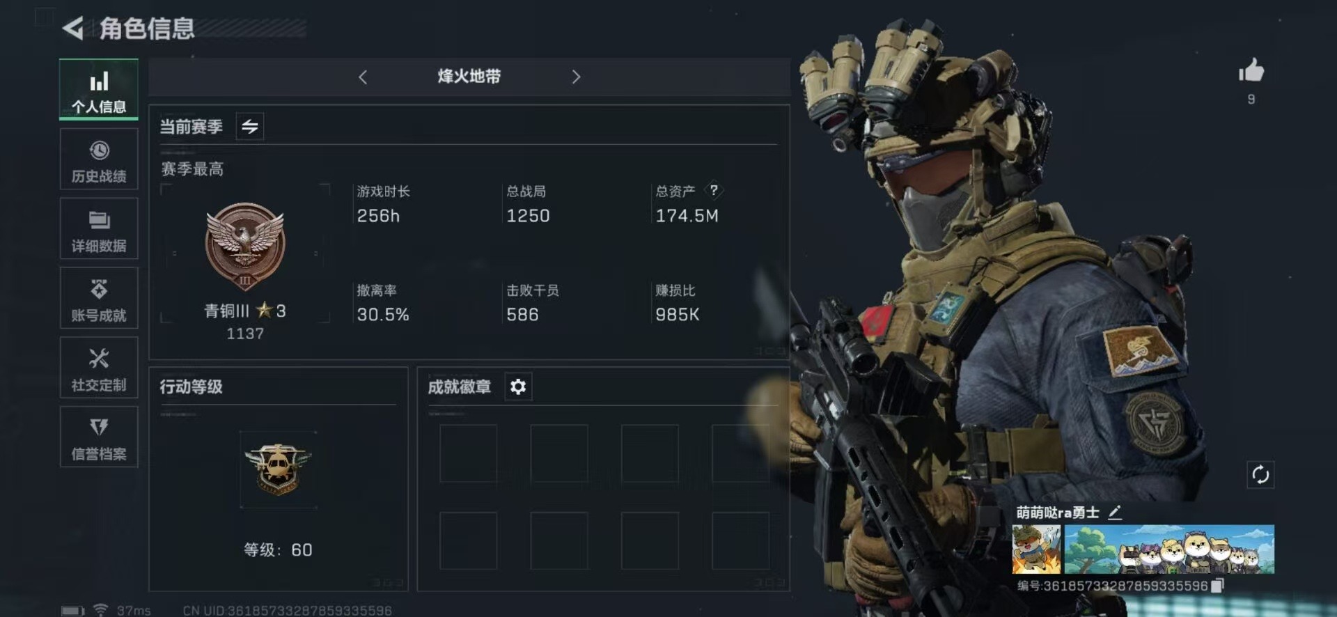 [12026202]总资产:174.5 7传说枪械 顶级安全箱(3×3)9.15号到期 可二次 可修改实名 优质装备:顶级安全箱(3x3) 烽火地带段位:青铜 全面战场段位:无段位 哈夫币:3.630 传说武器皮肤:M4A1突击步枪-阿米娅,CAR-15突击步枪-阿米娅,复合弓-黑-天际线,AK-12突击步枪-特斯拉线圈,SR-3M紧凑突击步枪-特斯拉线圈,UZI冲锋枪-特斯拉线圈,勇士冲锋枪-能天使-午夜邮差 史诗武器皮肤:MP5冲锋枪-深海恐惧,SV-98狙击步枪-林中猎手,M250通用机枪-囚徒