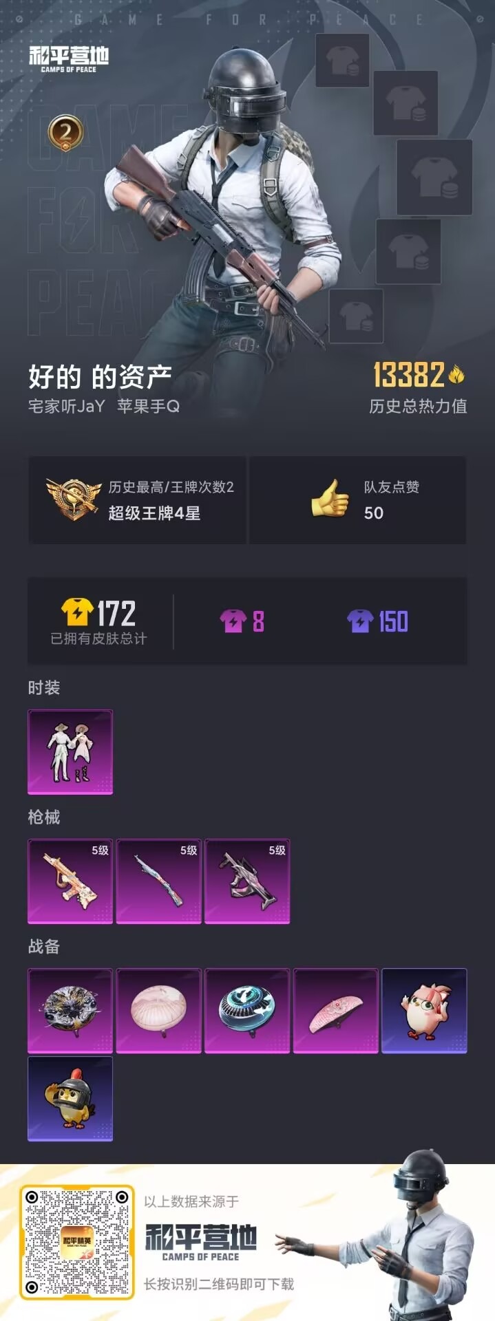 - PX_2103301- 安卓手Q-15王牌印记-11粉装-15特效枪-3载具-83549热力值-162套装-226枪皮-2卓越印记-1传奇印记 【11粉装】,梦幻火箭,洛天依,恐龙拽拽,阿尔茜,复仇流浪者,炙焰牛王,旋转彩虹,暗夜鎏金,未来歌姬,音爆索尼克,星之彼岸 【15特效枪】AKM-梦之光华-4级 SCAR-L-纯梦嫁纱-4级 M416-至情至圣-8级 AUG-星之彼岸-4级 Kar98K-