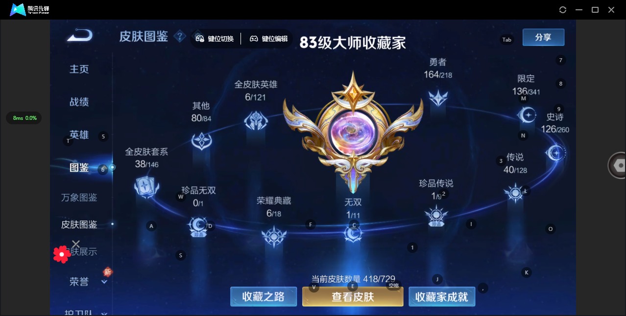 - [12295945]V9 1典藏 35传说 125英雄 353皮肤 可修改实名 优质装备:赤影疾锋,黄金射手座,云鹰飞将(小将军),绛天战甲(鸡嘴战神),猫影幻舞,久胜战神,炽阳神光,一念神魔,云霓雀翎,地狱火,李逍遥,乞巧织情,时之恋人-刘备(电焊工),游龙清影(小青龙),淬星耀世,山海·炽霜斩(李信年限),山海·琳琅生(小乔年限),山海·苍雷引(电光曜子),燃星之曲,画中仙,浮生妄,记忆之芯(机甲兔),百相守梦(张飞),鹤羽星尊,惊梅引 传说皮:乘龙·淬吴钩(孙策年限) 珍宝阁皮:妄想食味,优雅恋人,女武神 限定皮:鸣野蒿,武陵仙君(小桃花),魔法小厨娘,时雨天司(水龙头),神威(电光马子),山海·碧波行(瑶年限),无限倾心-项羽,高山流水,诗剑行,齐天大圣,怒海麟威,五谷丰年,青龙志(铠年限),幽恒(沐浴露),游园惊梦,梁祝,天狼狩猎者,龙胆,烈魂,虎魄,天狼绘梦者,李小龙,逐梦之影,逐梦之光,玄武志(苏烈年限),朱雀志(守约年限),永曜之星,默契交锋-兰陵王,真爱至上,引擎之心,寅虎·心曲(虎婆),唐三藏,山海·玄木吟(马可年限) 史诗皮:星界战将,石田雨龙,蔬乡物语(鲁班七号),乘龙·聚宝船(安琪拉年限),百相守梦-黄忠,紫霞仙子,苍穹之光,白龙吟,黄金分割率,特工魅影,千年之狐,电玩·爆裂旋风,鹤归松栖(赵怀真),江河有灵,雪夜绮愿(周瑜),高渐离燃音魔法,蒙恬荣光圣徽,偶像歌手,魅语,晚萤,冰冠公主,青蛇,末日机甲-吕布,猫狗日记-孙策,猫狗日记-大乔,时之恋人-孙尚香,乱世虎臣,节奏热浪,修罗,女仆咖啡,摇滚巨星,水果甜心,绅士熊喵,天才门将,星夜王子,心灵骇客,功夫厨神,德古拉伯爵,暗隐猎兽者,幽灵船长,鬼剑武藏,暗渊魔法,心灵战警,乐园奇幻夜,舞动绿茵,地狱岩魂,诗语江南,纤云弄巧,缤纷独角兽,乘风破浪,逐浪之夏,月团寄思,水晶猎龙者,曙光守护者,箭羽风息,唤灵魅影,金属风暴,原初追逐者,圣诞狂欢,圣诞恋歌,鹰眼统帅,暗夜贵公子,魅力维加斯,黎明之约,无心,未来纪元-赵云