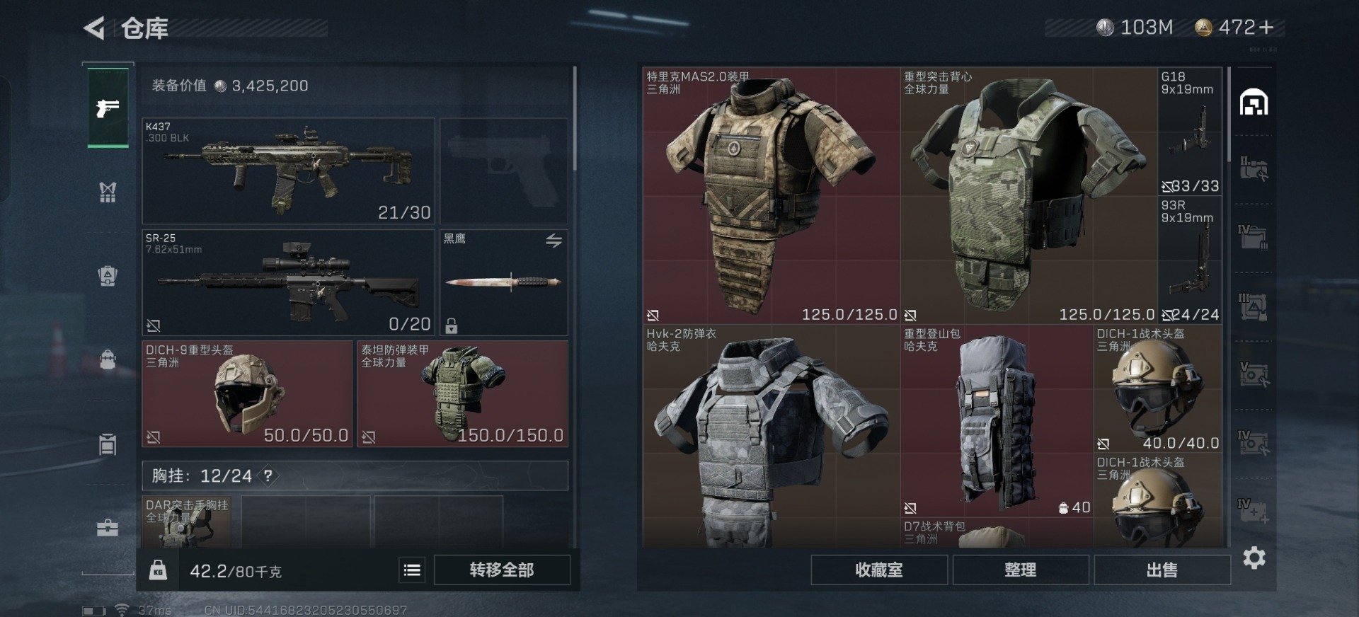 - [11529718]总资产:135.9M 1近战传说 10传说枪械 哈夫币:46.261K 可二次 可修改实名 优质装备:近战-黑海 烽火地带段位:铂金 全面战场段位:上等兵 传说武器皮肤:SR-25射手步枪-水墨云图,AK-12突击步枪-夜鹰,SMG45冲锋枪-骑士,UZI冲锋枪-流光铂影,G18-飞虎,勇士冲锋枪-能天使-午夜邮差,MP5冲锋枪-黑海,QJB201轻机枪-黑海,CAR-15突击步枪-黑鹰坠落