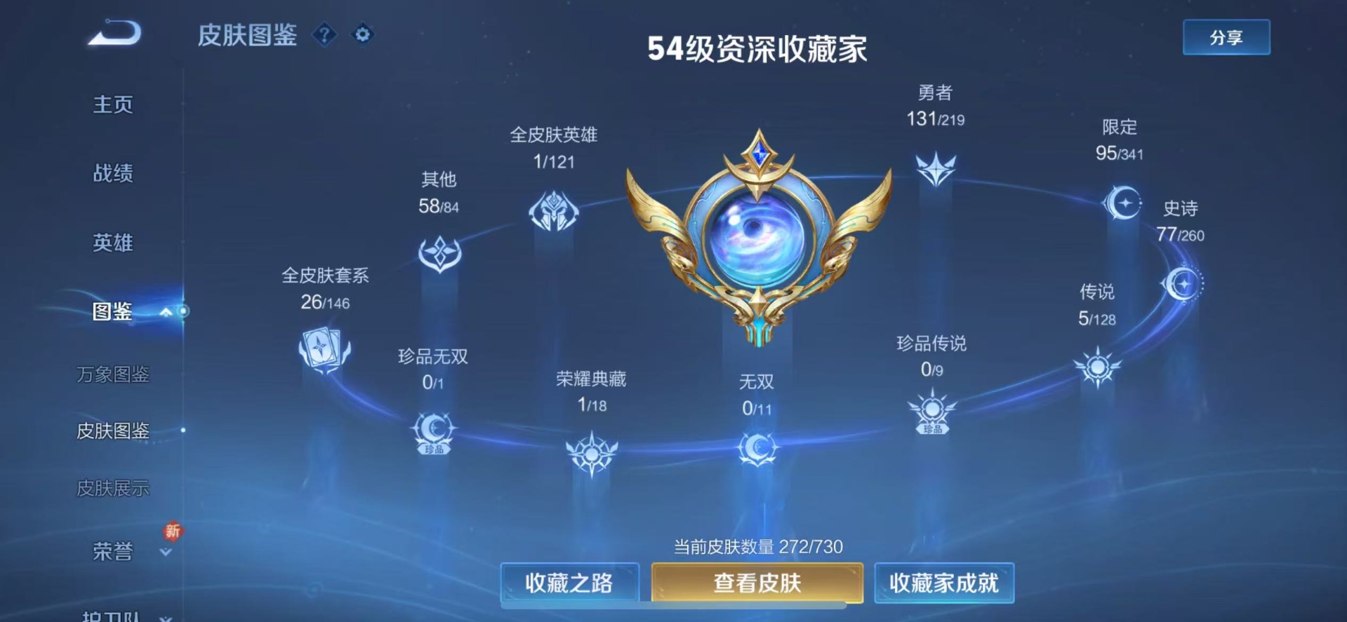 - PX_2099140-【妹子号! 女号!】实名: 可修改 贵族等级: V7 英雄数: 97 皮肤数: 95 荣耀水晶: 幻阙歌 传说皮: 猫影幻舞,仲夏夜之梦,山海·琳琅生,记忆之芯,霜月吟 限定皮: 玉兔公主,神器·万象笔,山海·碧波行,无限倾心-虞姬,鸣野蒿,愿照·岁时盈