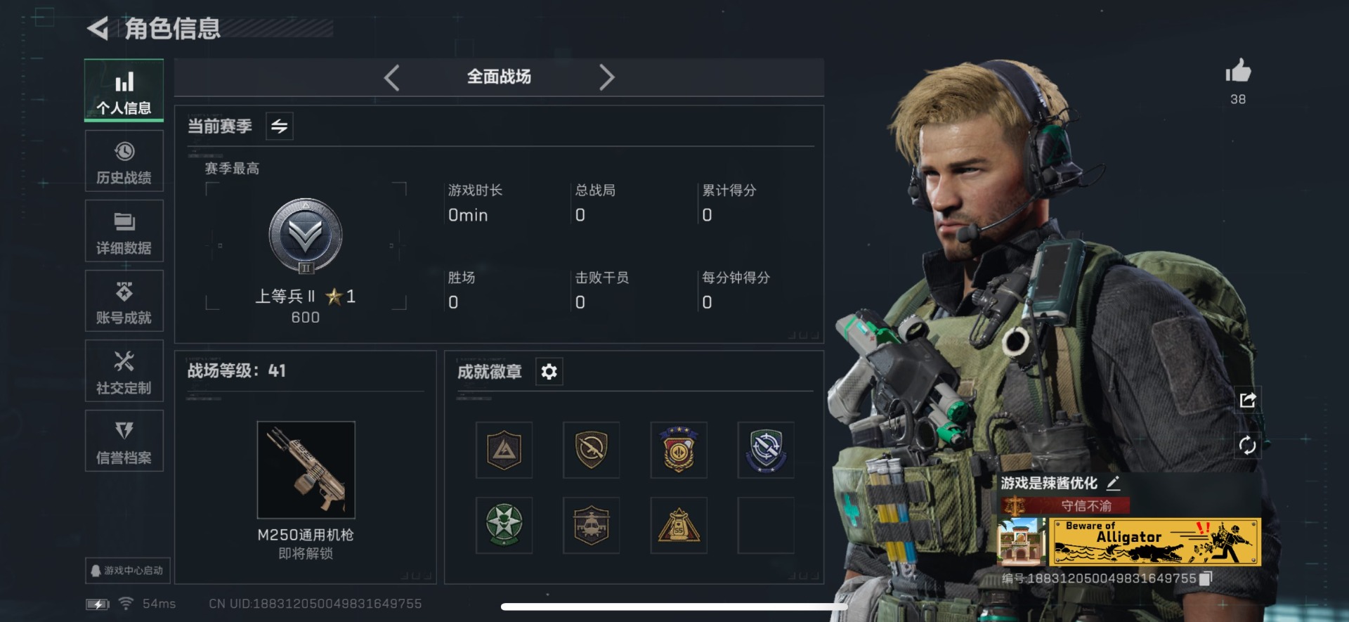 - [11228405]实名: 可修改 时装数: 319 枪械数: 119 战备数: 65 热门装扮: 洛天依,憨憨奶龙,光极星 稀有枪皮: M416风花雪月,SCAR-L-锦绣绵绵,M416墨龙九天,Kar98K-巳巳如意