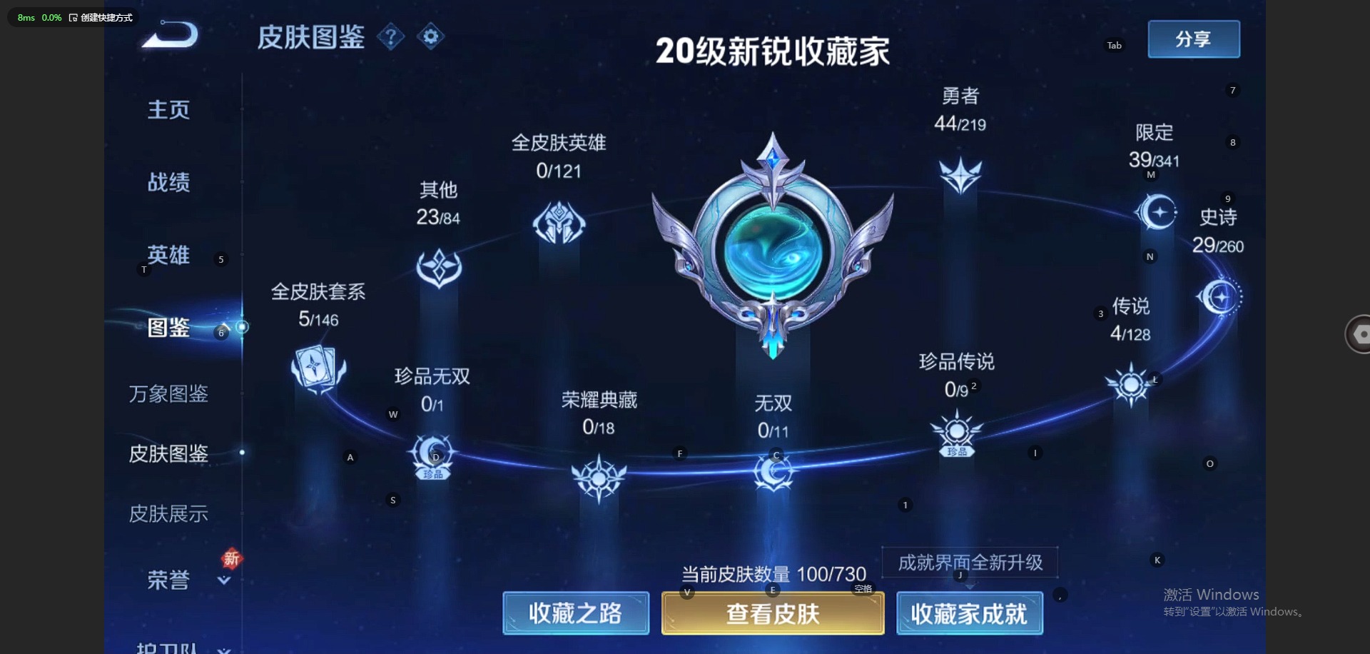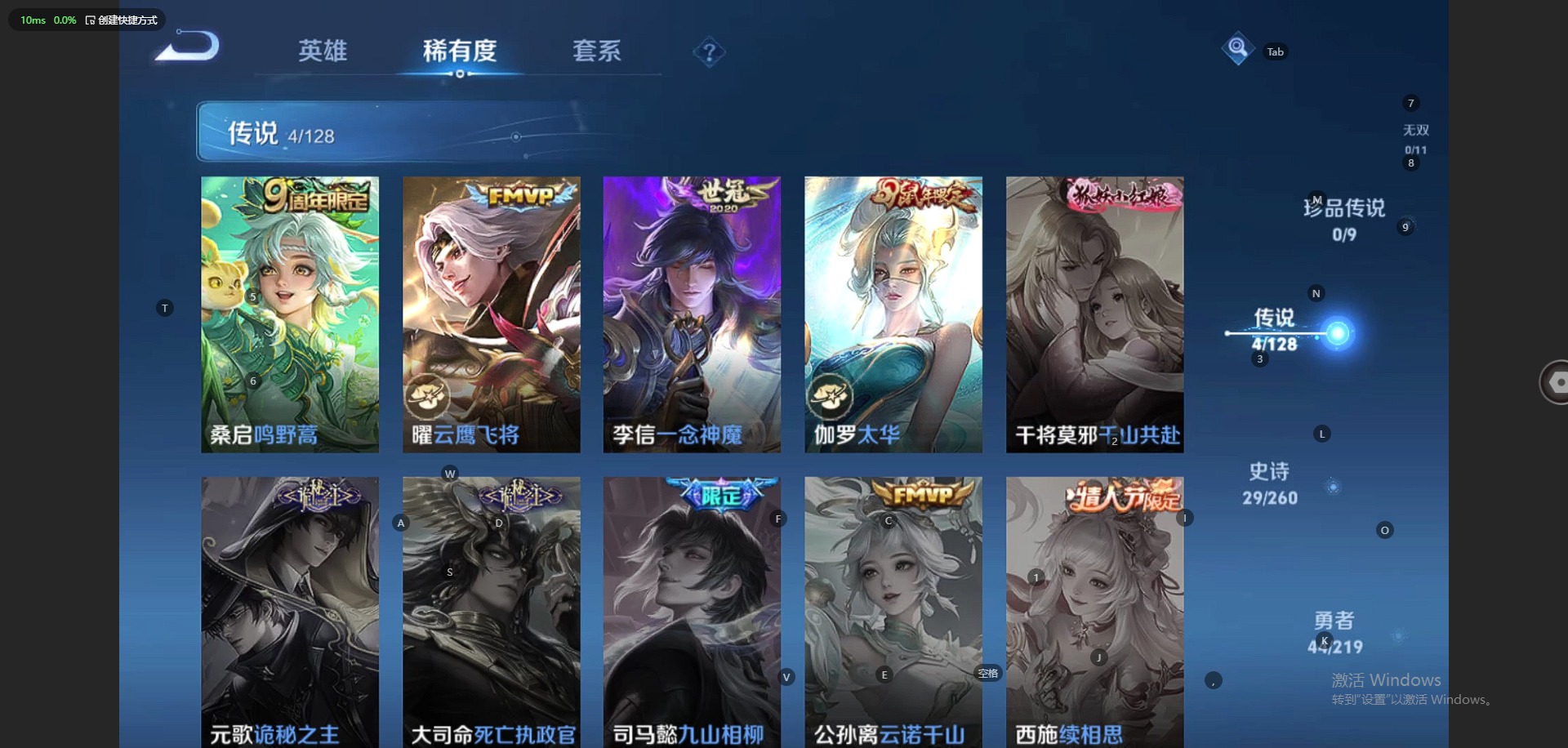 - PX_2108144-Q/最强王者/364皮肤/125英雄/3典藏/0珍品无双/1无双/0珍品传说/23传说/92史诗/9稀有英雄 【3 典藏皮肤】天鹅之梦 小乔,神鉴启示录 虞姬,九霄神辉 花木兰, 【1 无双皮肤】群星魔术团 韩信, 【23 传说皮肤】启明星使 虞姬,云霓雀翎 虞姬,白虎志 百里玄策,零号·赤焰 孙悟空,云鹰飞将 曜,猫影幻舞 貂蝉,地狱之眼 宫本武藏,祈雪灵祝 公孙离,鹤羽星