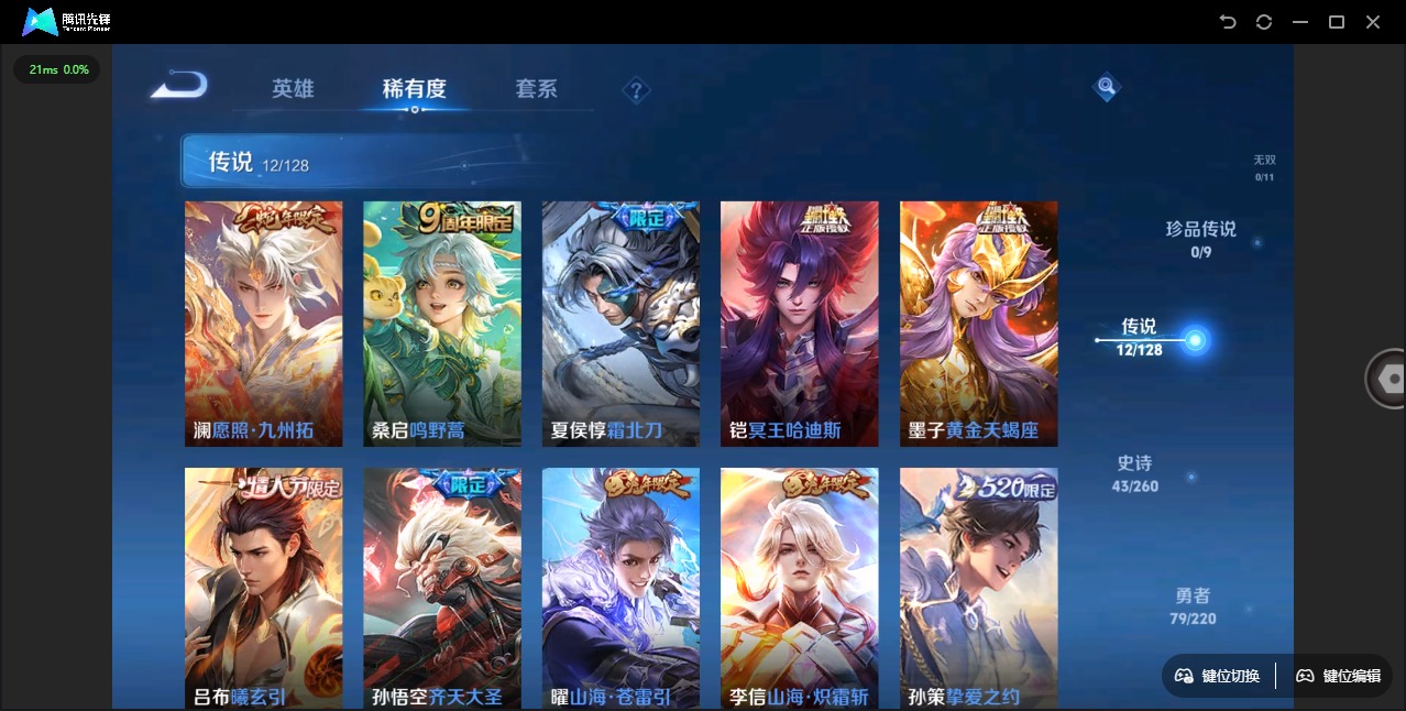 - [12086989]V7 1典藏 5传说 124英雄 265皮肤 可修改实名 优质装备:鸣剑·曳影,一念神魔,地狱火,山海·炽霜斩(李信年限),山海·苍雷引(电光曜子) 珍宝阁皮:万物之道,蔷薇恋人,女武神 限定皮:鸣野蒿,神威(电光马子),飞衡(韩信年限),遇见飞天,高山流水,五谷丰年,冰锋战神,游园惊梦,梁祝,天狼绘梦者,李小龙,朱雀志(守约年限),猪悟能,大圣娶亲,百木心枪 史诗皮:星界战将,苍穹之光,电玩小子(小书包),白龙吟,特工魅影,千年之狐,江河有灵,高渐离燃音魔法,蒙恬荣光圣徽,冰冠公主,青蛇,龙骑士(小龙虾),猫狗日记-孙策,猫狗日记-大乔,时之恋人-孙尚香,乱世虎臣,节奏热浪,修罗,摇滚巨星,水果甜心,绅士熊喵,星夜王子,心灵骇客,功夫厨神,德古拉伯爵,暗隐猎兽者,幽灵船长,鬼剑武藏,心灵战警,地狱岩魂,纤云弄巧,繁星吟游(呼啦呼啦),拒霜思,缤纷独角兽,乘风破浪,逐浪之夏,水晶猎龙者,曙光守护者,金属风暴,原初追逐者,圣诞狂欢,鹰眼统帅,魅力维加斯,黎明之约,雪上飞焰,无心,未来纪元-赵云
