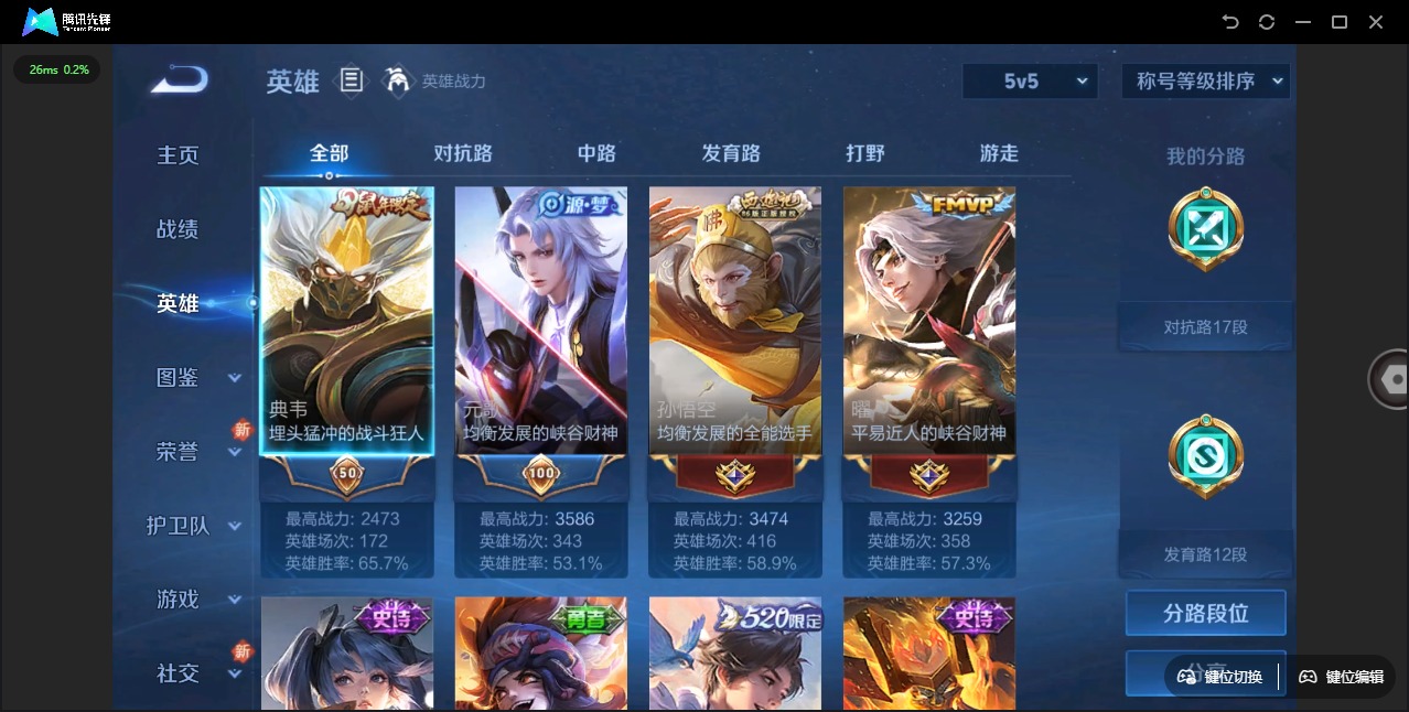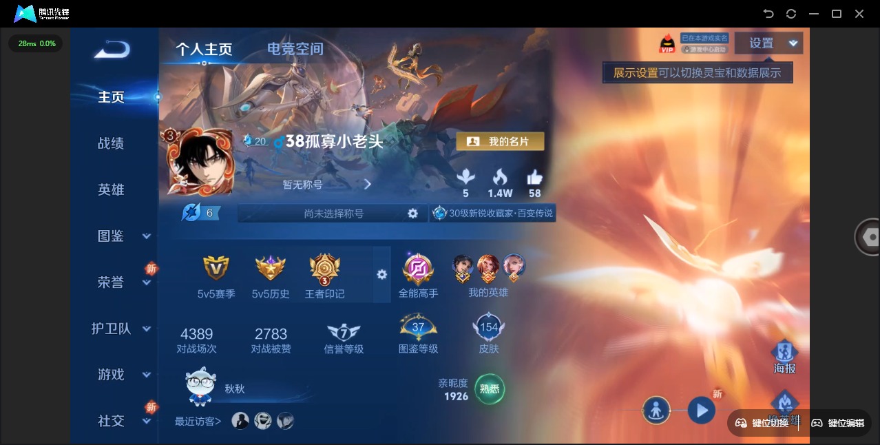 - PX_2095793-实名: 可修改 贵族等级: V3 英雄数: 90 皮肤数: 75 传说皮: 久胜战神,幻光神枪 限定皮: 鸣野蒿,愿照·岁时盈