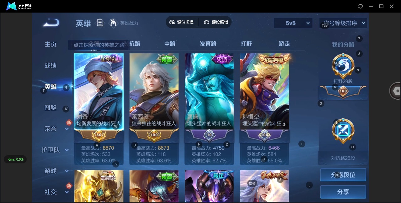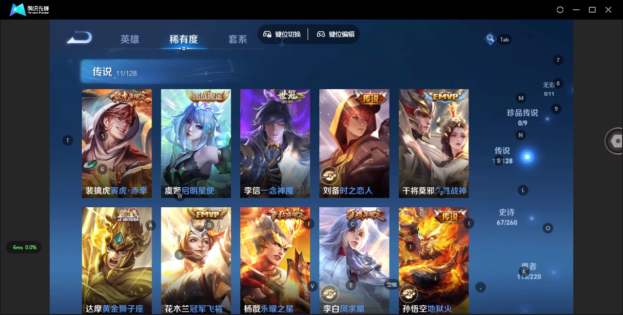 - [11688370]V5 1珍品传说 2传说 122英雄 95皮肤 可修改实名 优质装备:器灵·落星盏,超时空战士-狄仁杰,涂山容容 限定皮:鸣野蒿,冰锋战神,梁祝,龙胆,逐梦之星,李小龙,辉光之辰 史诗皮:石田雨龙,百相守梦-周瑜,黄金分割率,冰冠公主,水果甜心,心灵骇客,暗隐猎兽者,幽灵船长,心灵战警,缤纷独角兽,逐浪之夏,水晶猎龙者,热力回旋,鹰眼统帅,魅力维加斯,未来纪元-赵云