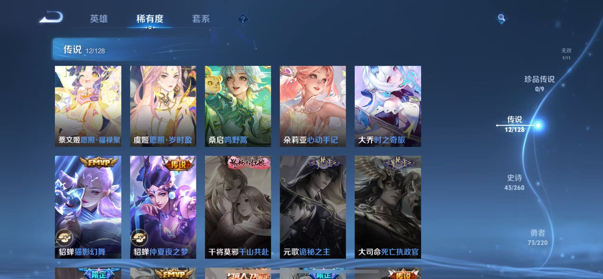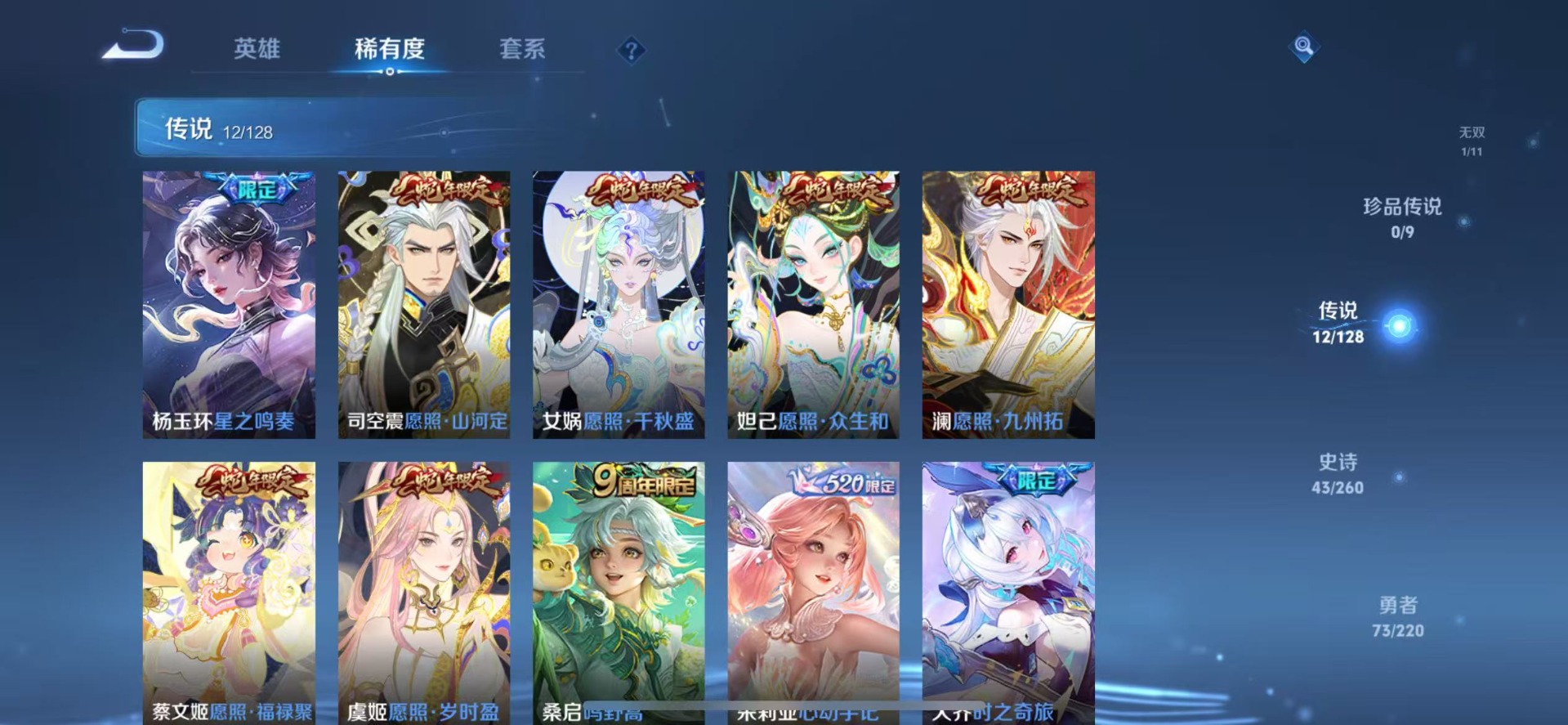 - [11526713]V10 6典藏 62传说 126英雄 527皮肤 典藏英雄武则天 可修改实名 优质装备:天鹅之梦(小乔典藏),倪克斯神谕(宇宙婆娘),无限飓风号(高达),鸣剑·曳影,全息碎影(猴子典藏),银白咏叹调(倪克斯侍卫),黄金狮子座,黄金射手座,冠军飞将,云鹰飞将(小将军),绛天战甲(鸡嘴战神),黄金白羊座,猫影幻舞,久胜战神,炽阳神光,一念神魔,云霓雀翎,末日机甲-孙尚香(绿蚂蚱),地狱火,仲夏夜之梦(大飞蛾),零号·赤焰,海洋之心,地狱之眼,飞鸢探春,胖达荣荣,乞巧织情,时之恋人-刘备(电焊工),淬星耀世,超时空战士-狄仁杰,末日机甲-孙策,花朝如约(花篮子),山海·炽霜斩(李信年限),山海·琳琅生(小乔年限),山海·苍雷引(电光曜子),艾琳觅芳踪,金乌负日,黄金天蝎座,云中君群星魔术团,朵莉亚心动手记 传说皮:乘龙·问璇玑(孙尚香年限),乘龙·铭钟鼎(赵云年限),乘龙·淬吴钩(孙策年限),貂蝉曦玄引,吕布曦玄引,典韦战鼓燎原,落雪白狼,幻光神枪 珍宝阁皮:妄想食味,优雅恋人,蔷薇恋人,女武神 限定皮:愿照·九州拓(澜年限),愿照·福禄聚(蔡文姬年限),愿照·岁时盈(虞姬年限),愿照·山河定(司空震年限),愿照·众生和(妲己年限),愿照·千秋盛(女娲年限),逐霄战戟,鸣野蒿,至尊宝,白虎志(电光耗子),凤求凰(白切鸡),凤凰于飞,太华(伽罗年限),梅西,武陵仙君(小桃花),寅虎·展翼(孙膑年限),魔法小厨娘,白晶晶,时雨天司(水龙头),神威(电光马子),飞衡(韩信年限),玄嵩(庄周年限),山海·碧波行(瑶年限),无限倾心-项羽,瑞麟志(木兰年限),遇见飞天,无限倾心-虞姬,齐天大圣,五谷丰年,青龙志(铠年限),冰锋战神,幽恒(沐浴露),武圣,天狼运算者,游园惊梦,梁祝,御风骁将(吕布年限),天狼狩猎者,龙胆,逐梦之翼,逐梦之星,岱宗(典韦年限),天狼征服者,奔雷神使(牛魔年限),祈雪灵祝(雪兔子),天狼绘梦者,李小龙,逐梦之影,逐梦之光,玄武志(苏烈年限),朱雀志(守约年限),永曜之星,辉光之辰,如梦令-嫦娥,如梦令-后羿,霸王别姬-项羽,霸王别姬-虞姬,奇迹圣诞,默契交锋-兰陵王,默契交锋-花木兰,孙行者,猪悟能,一生所爱,大圣娶亲,引擎之心,天魔缭乱,青春决赛季,冰霜恋舞曲,云端筑梦师,蜜橘之夏,热情桑巴,神奇女侠,美猴王,寅虎·御盾(廉颇年限),天降福星,山海·